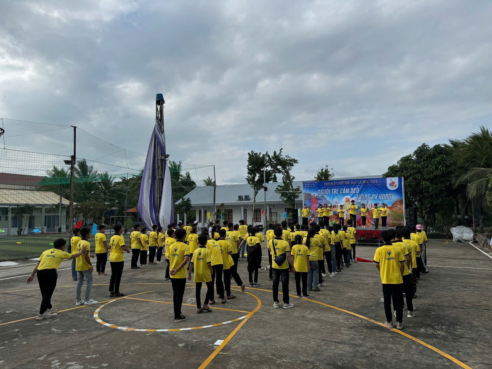 Trước sự tiếp đón nhiệt tình của ban tổ chức, các bạn trẻ nhanh chóng được chia đều về các đội và hòa mình vào bầu không khí sôi động của ngày gặp gỡ. Ban tổ chức đã hướng dẫn các bạn hô băng reo, múa bài ca chủ đề và giới thiệu các thành phần tham dự. Cha đặc trách giới trẻ hạt Cà Mau, Dominico Trường, đã chia sẻ về ý nghĩa của chủ đề “Người Trẻ Cắm Neo Trong Hy Vọng”, nhấn mạnh rằng khi có Đức Kitô làm trung tâm, Ngài sẽ không bao giờ để chúng ta thất vọng. Sau đó, Cha Dominico đã thánh hóa và tuyên bố khai mạc ngày đại hội giới trẻ hạt Cà Mau.