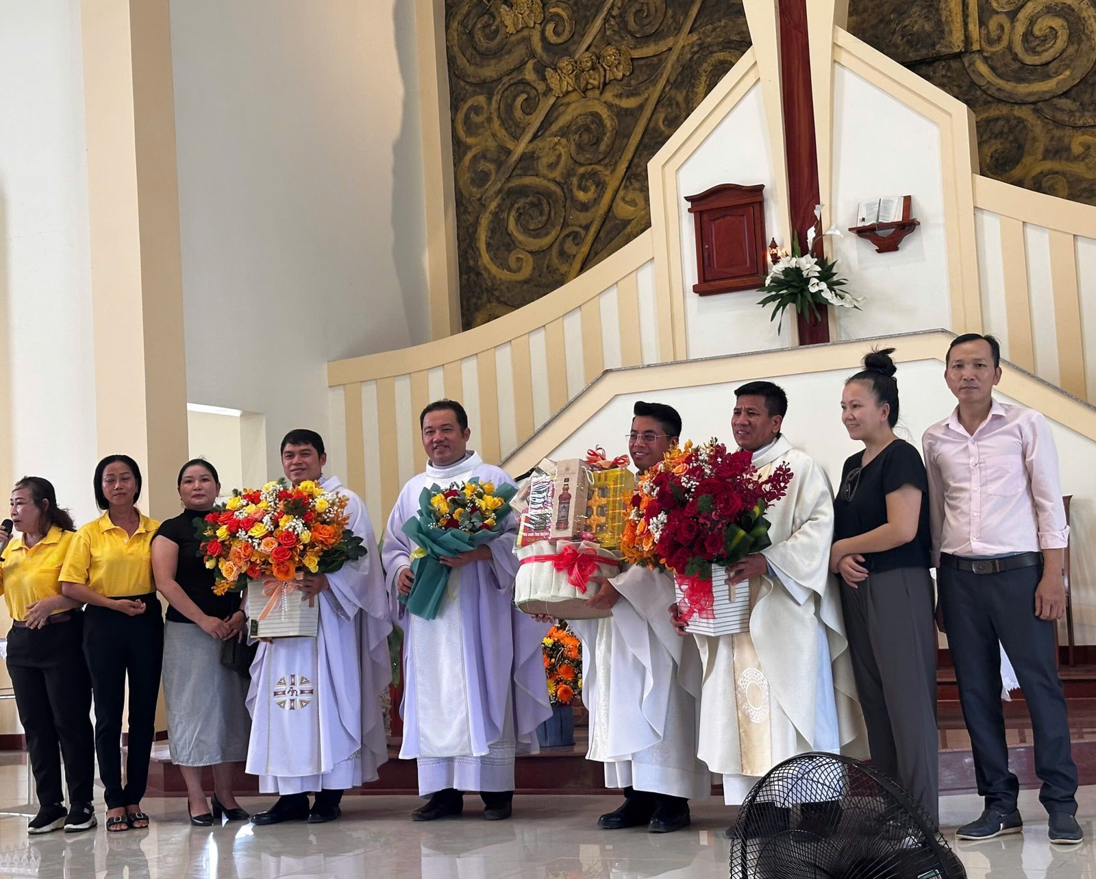 Để bày tỏ lòng biết ơn, quý phụ huynh đã trang trọng kính tặng những bó hoa tươi thắm đến Cha Quản lý Tỉnh Dòng Nicola Kiều Long Hồ, Cha Giám đốc Cộng thể Tôma Vũ Thanh Phong, cùng quý Cha và quý Thầy.