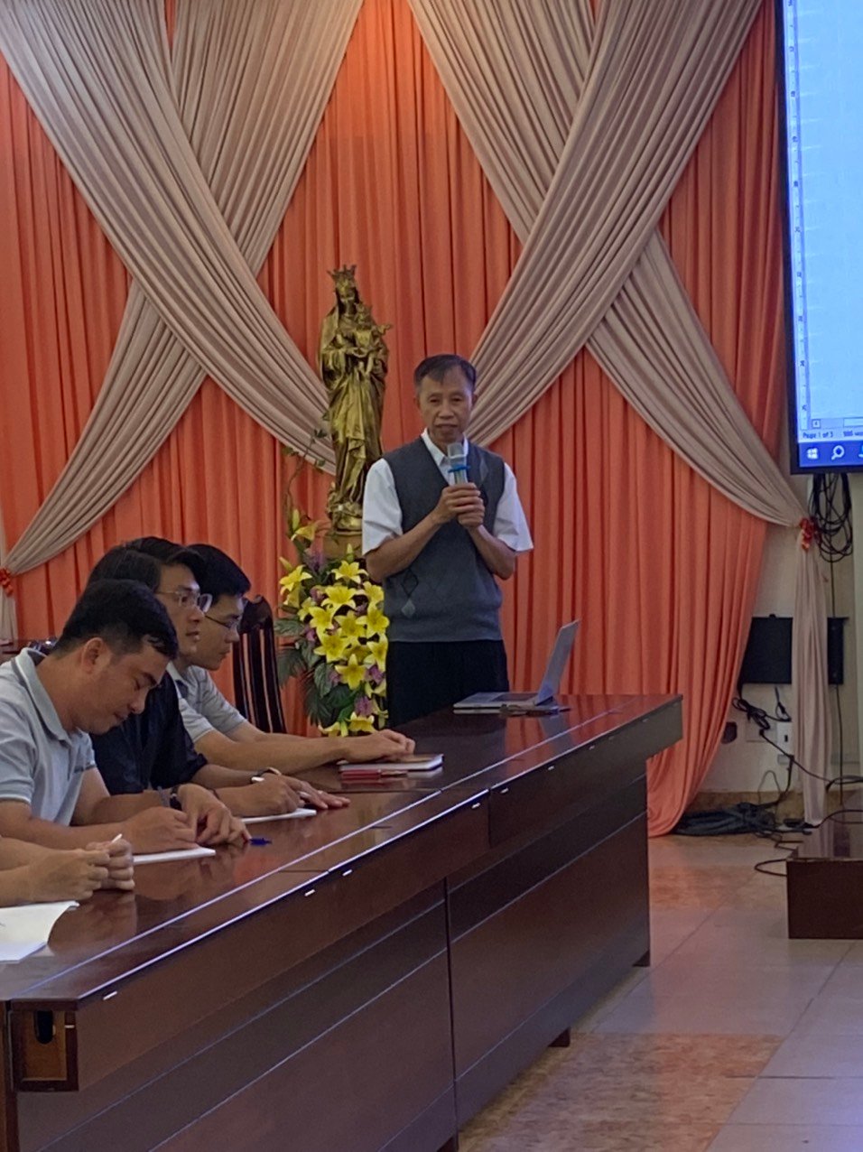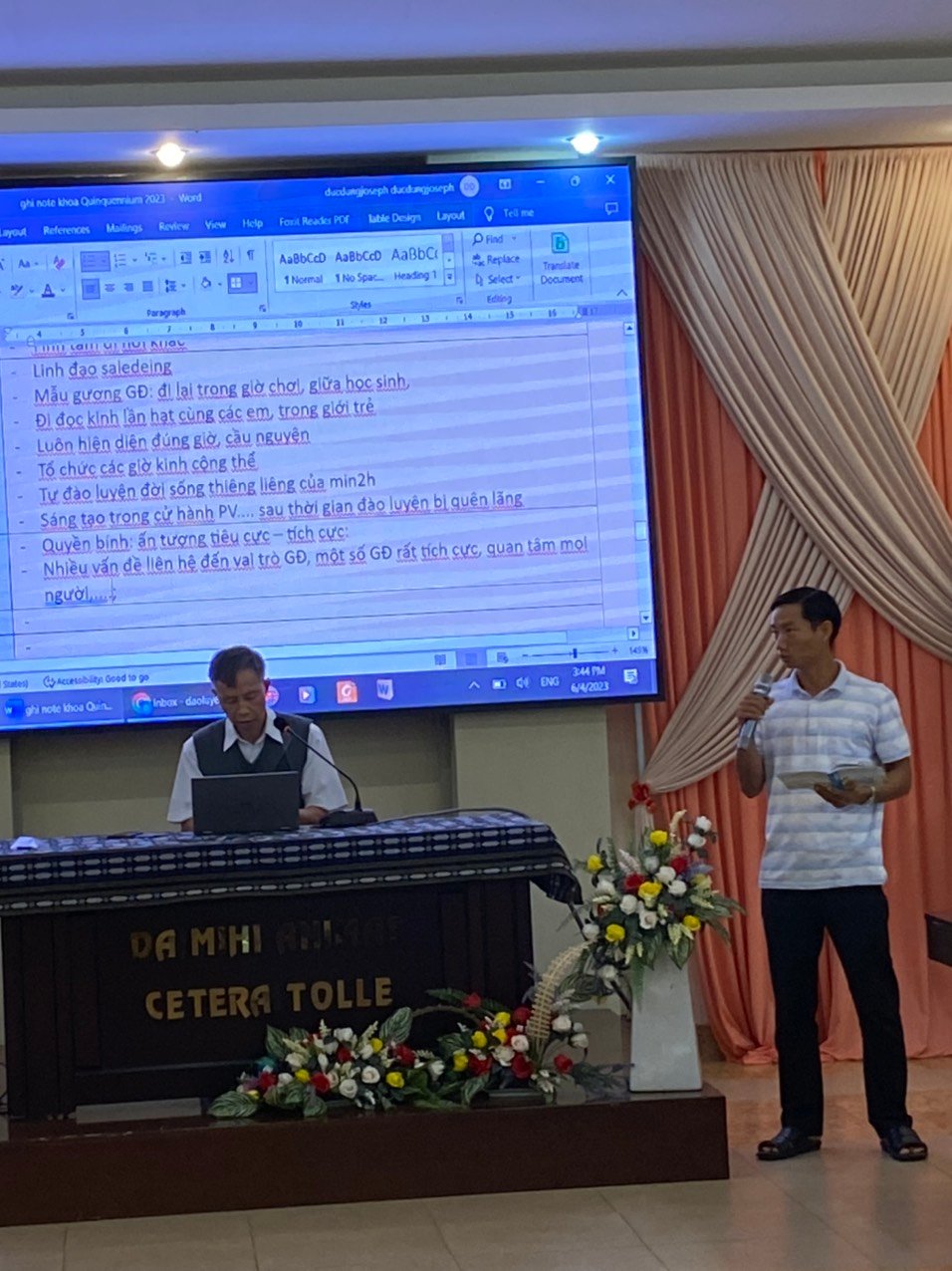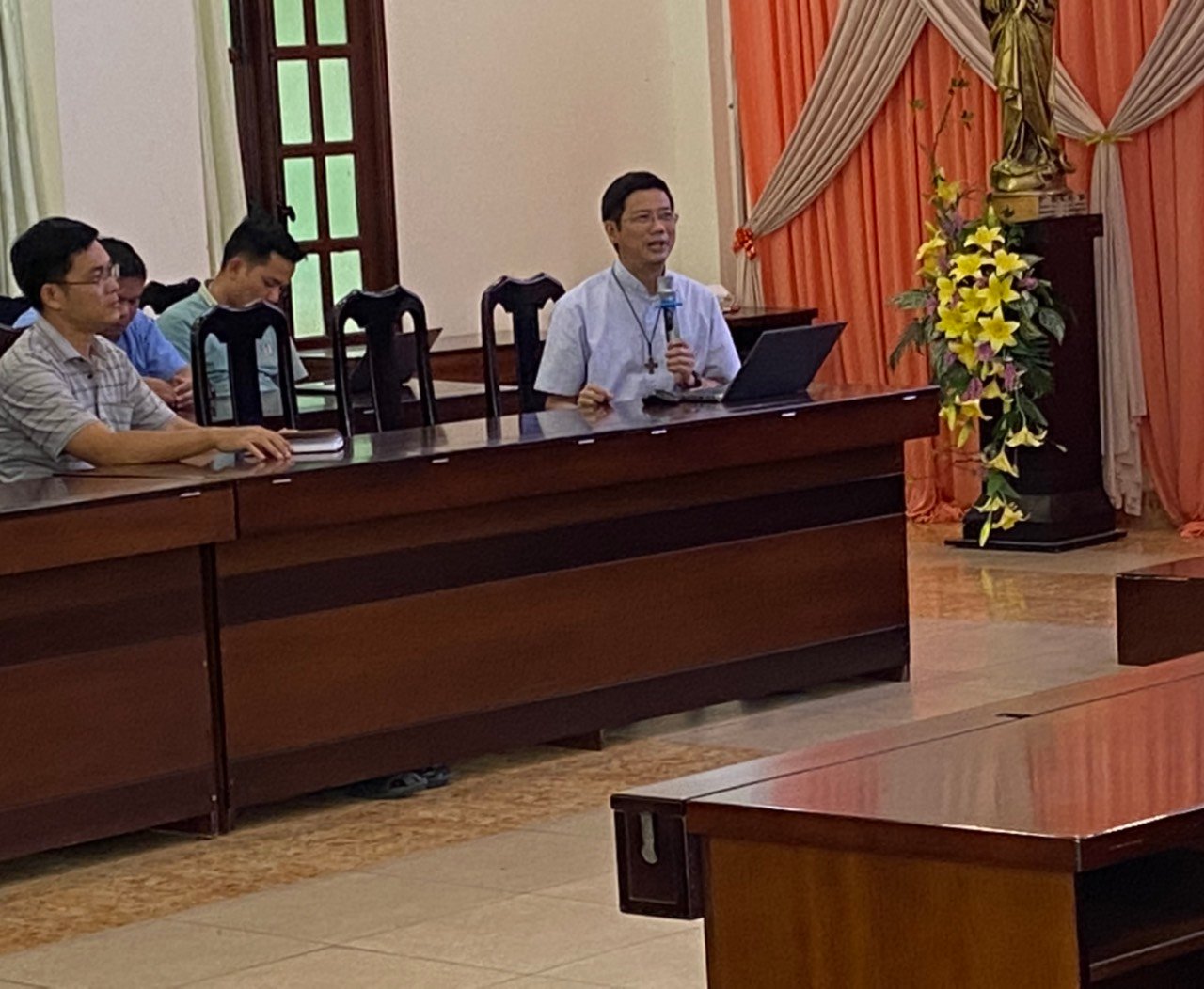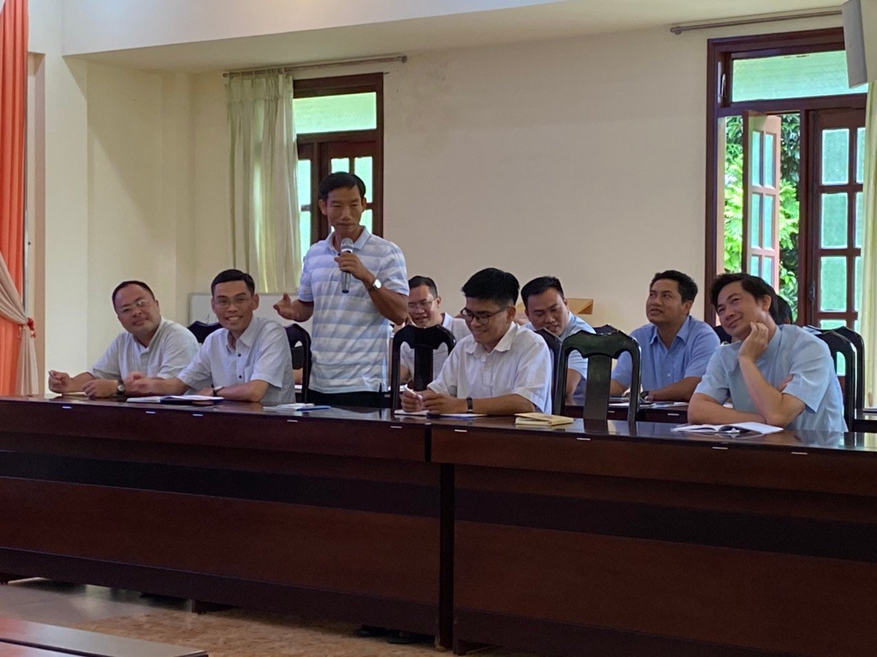 Năm nay, Ban đào luyện đã chọn những đề tài phục vụ cho mục đích chuẩn bị nhân sự cho Tỉnh dòng trong tương lai. Do đó, trong ngày 4/6, cha Giám tỉnh đã chia sẻ với các tham dự viên Đề Tài 1 liên quan đến vai trò lãnh đạo trong Cộng đoàn: Chuẩn Bị Tâm Thế Cho Trách Nhiệm Sinh Động – Hướng Dẫn Cộng Thể. Qua đề tài này, cha Giám tỉnh đã trình bày dung mạo lãnh đạo của Don Bosco như một mục tử với những đường nét tạo nên một người Cha, một Đấng sáng lập, một nhà giáo dục. Đồng thời, qua hình ảnh mẫu mực đó, cha Giám tỉnh mời gọi Quý Cha, Quý Sư Huynh nhớ lại và nêu lên những đường nét mà anh em học được từ các SDB khác về Don Bosco, khi được tiếp xúc, gặp gỡ họ. Qua những mẫu gương ấy, cha mong muốn người SDB phải trở thành hình ảnh của Don Bosco cho giới trẻ: một nhân cách thu hút, tạo cảm hứng và động lực cho người khác cách tích cực. Sau đó, cha chia sẻ điểm tiếp theo liên quan đến những nguyên tắc của quyền bính và việc lãnh đạo Cộng đoàn.