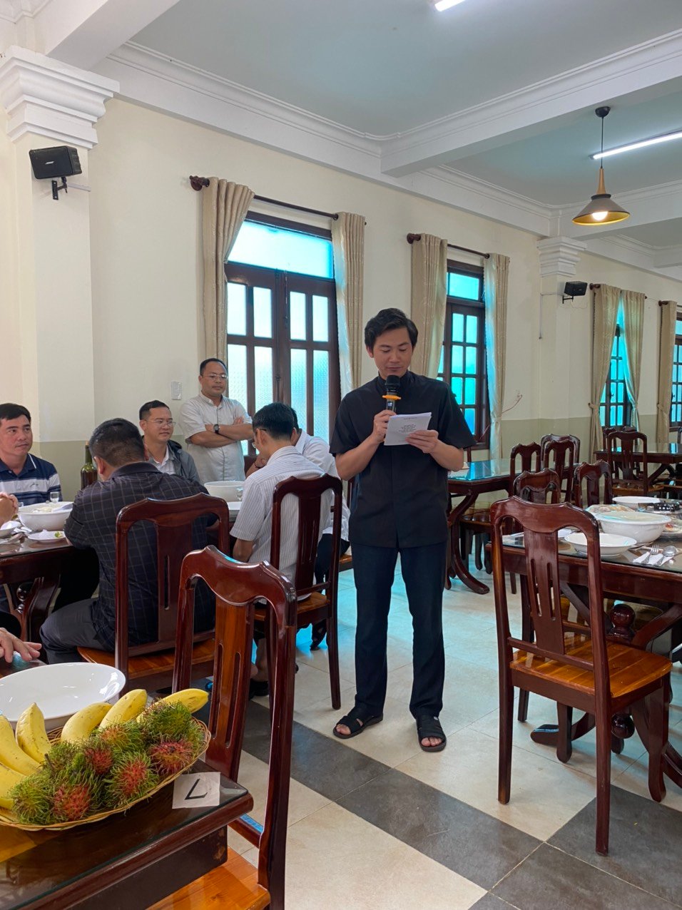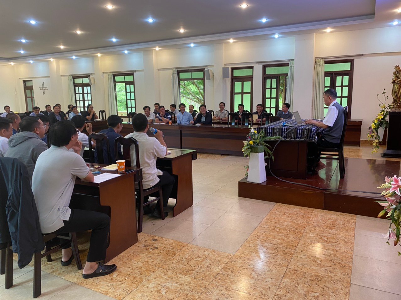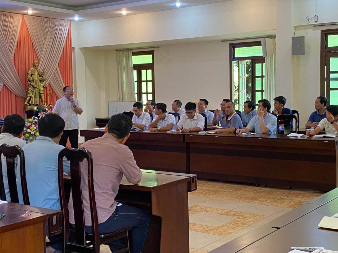 Trong giờ cơm trưa, cha Martino Trần Thất Bảo đã thay mặt cho Quý Cha, Quý Thầy, cám ơn cha Giám Tỉnh, cha Uỷ viên Đào luyện, quý cha, quý Sư Huynh và các nhân viên của Trung Tâm Tĩnh Tâm K’Long vì những hy sinh phục vụ hết mình, giúp cho những ngày Bồi dưỡng được diễn ra và kết thúc tốt đẹp.