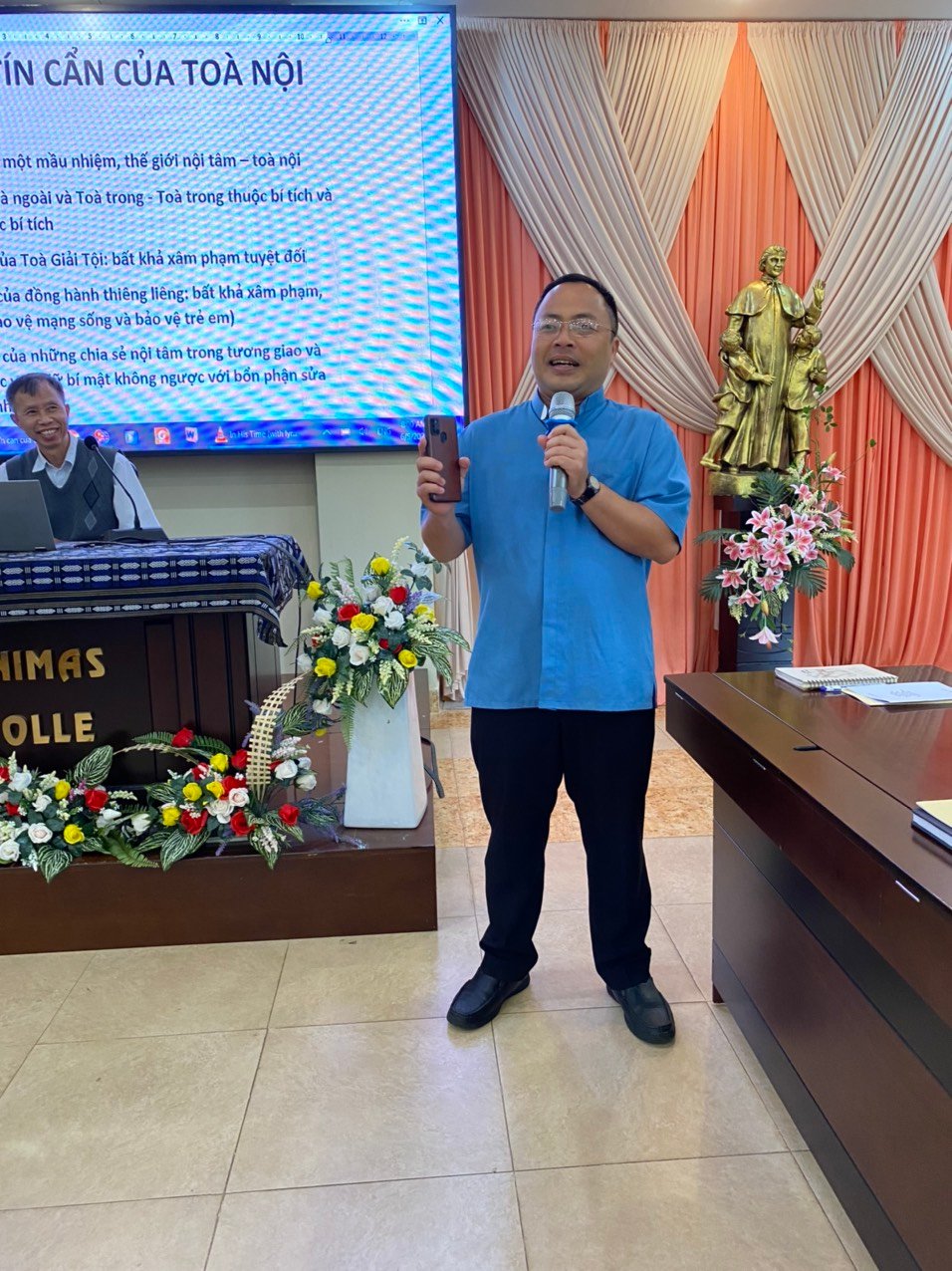Người lãnh đạo Salêdiêng không thể thiếu phẩm chất và vai trò đồng hành. Để hiểu và đồng hành với các tâm hồn, cần cả toà ngoài và toà trong. Trong đó, những vấn đề liên quan đến toà trong với những khía cạnh ở sâu trong lương tâm cần được tôn trọng và giữ kín cẩn. Và đó chính là nội dung của Đề tài thứ hai được cha Uỷ Viên Đào Luyện trình bày: Tính Tín Cẩn Của Toà Nội. Qua đó, các tham dự viên ý thức hơn về việc giữ cẩn mật những gì mình được lắng nghe nơi toà giải tội hay trong các câu chuyện “bên trong” được chia sẻ trong quá trình hướng dẫn thiêng liêng.