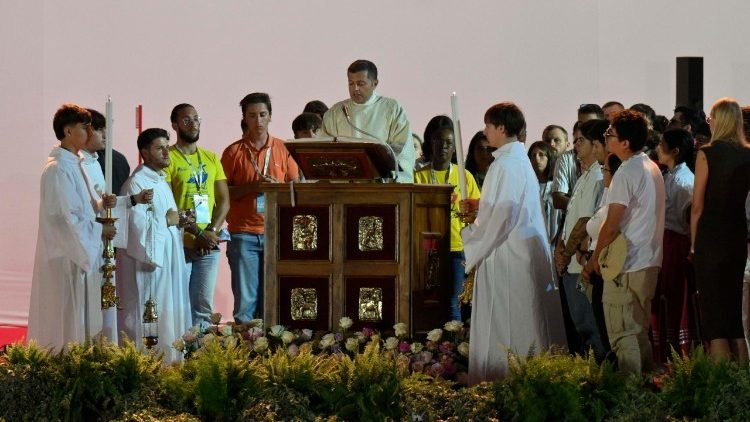 Chiều tối thứ Bảy ngày 02/8/2025, Đức Thánh Cha Lêô XIV đã chủ sự giờ Canh thức cầu nguyện với hàng trăm ngàn bạn trẻ tại Tor Vegata. Trong cuộc gặp gỡ này ngài đã trả lời ba câu hỏi của các bạn về “tình bạn, can đảm chọn điều tốt đẹp và đời sống thiêng liêng và cầu nguyện”.