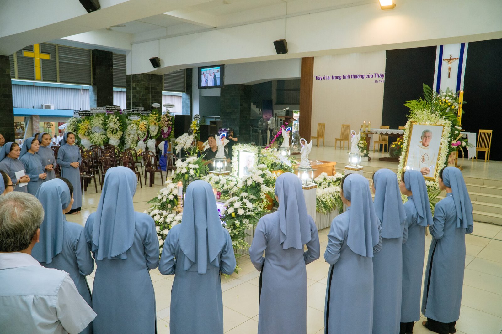 Vào lúc 16h30, ngày 04/04/2024, nhằm ngày Thứ Năm trong Tuần Bát nhật Phục Sinh, trước ngày diễn ra Thánh Lễ an táng cha Giuse Nguyễn Văn Quang – Nguyên Giám tỉnh Tỉnh dòng Salêdiêng Don Bosco Việt Nam, các thành phần trong Đại gia đình Salêdiêng Don Bosco Việt Nam đã quy tụ để kính viếng và dâng Thánh Lễ cầu nguyện cho ngài.