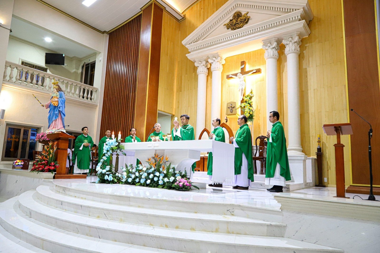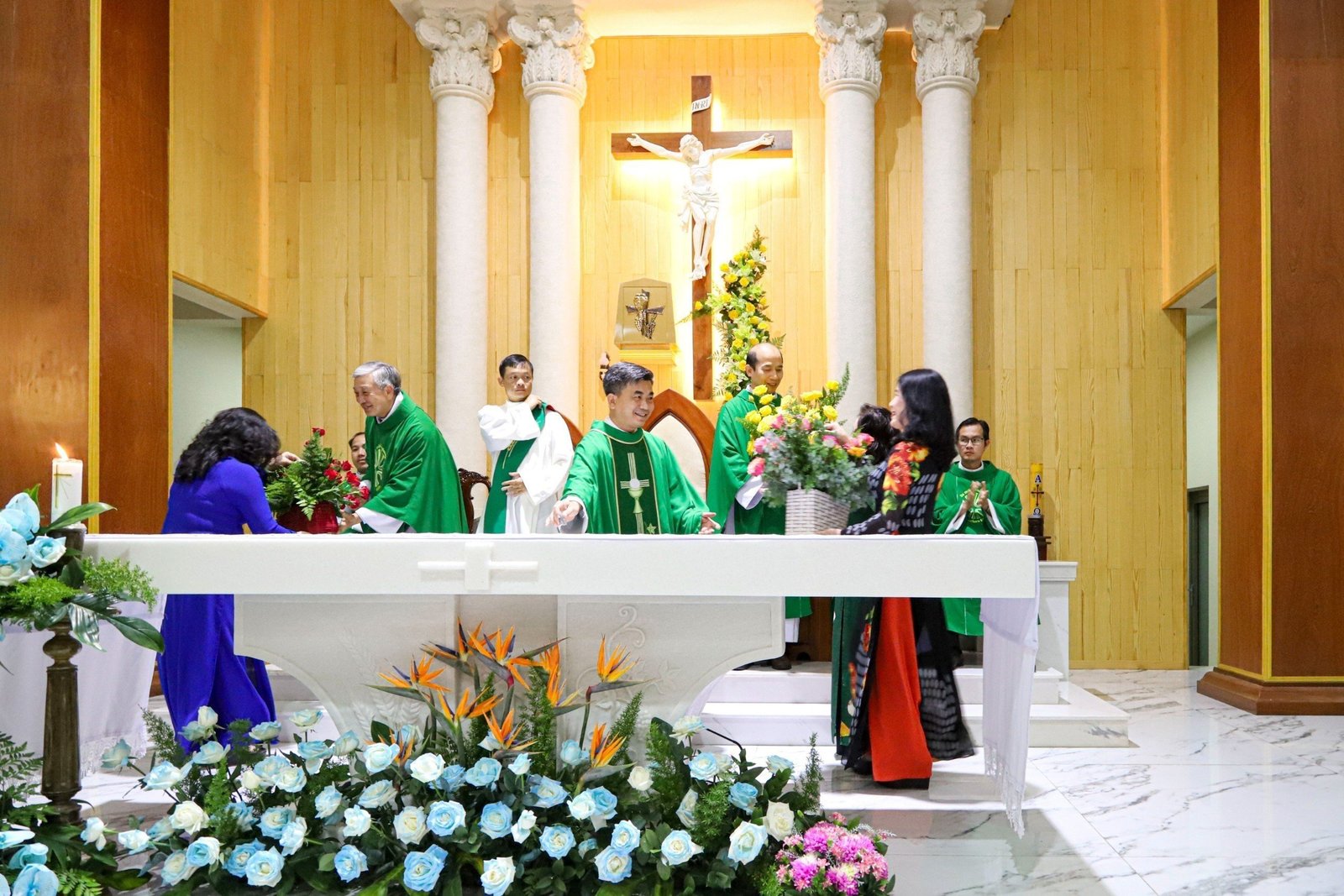 Cha Giám đốc mời cha Phanxicô Xaviê chủ sự thánh lễ. Đồng tế với ngài có Quý cha Cộng thể, Cha Giuse giảng lễ.