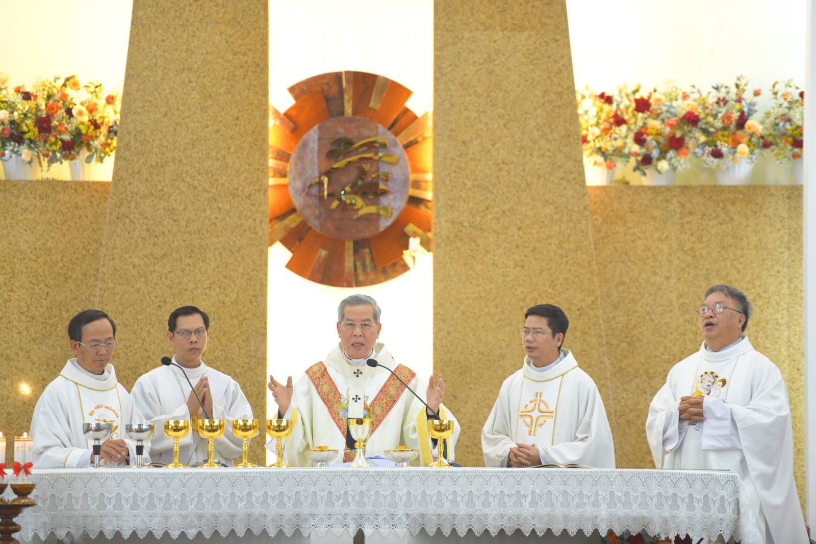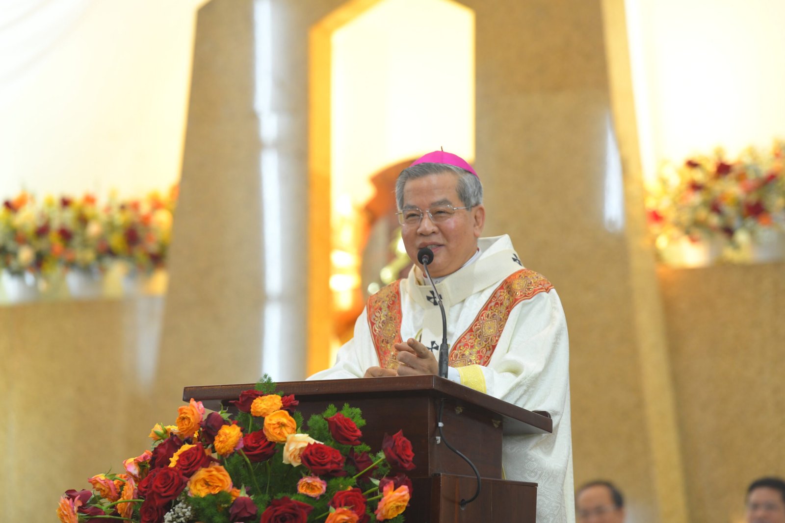 Trong bài giảng , Đức Tổng Giuse đã nhắc nhở cộng đoàn giáo xứ tạ ơn Chúa vì hồng ân Chúa ban xuống cho giáo xứ. Khởi đi từ Bài Đọc I về lời cầu nguyện của vua Salômôn sau khi cung hiến Đền Thờ Giêrusalem, Đức Tổng đã nói với cộng đoàn về một Thiên Chúa toàn năng đến nỗi cả vũ trụ đều không chứa nổi lại trở nên nhỏ bẻ và ngự lại trong ngôi thánh đường này. Từ đó, ngài nhắc nhở mỗi người cần phải đến và gặp Chúa để tìm thấy ý nghĩa của cuộc sống, chỉ khi chia sẻ Chúa cho người khác đó mới cảm thấy hạnh phúc và niềm vui đích thực. Kế đến, Đức Tổng nhấn mạnh với cộng đoàn về nhiệm vụ loan báo Tin Mừng, ngài nhắc nhở mọi người rằng Chúa quy tụ chúng ta trong dân Chúa là để Chúa ở lại với chúng ta, để chúng ta tìm được lẽ sống nơi Chúa, khi đã có Chúa, có hạnh phúc đích thực rồi, thì nhiệm vụ của mỗi người là phải chia sẻ Chúa với người khác để họ cũng được cứu độ.