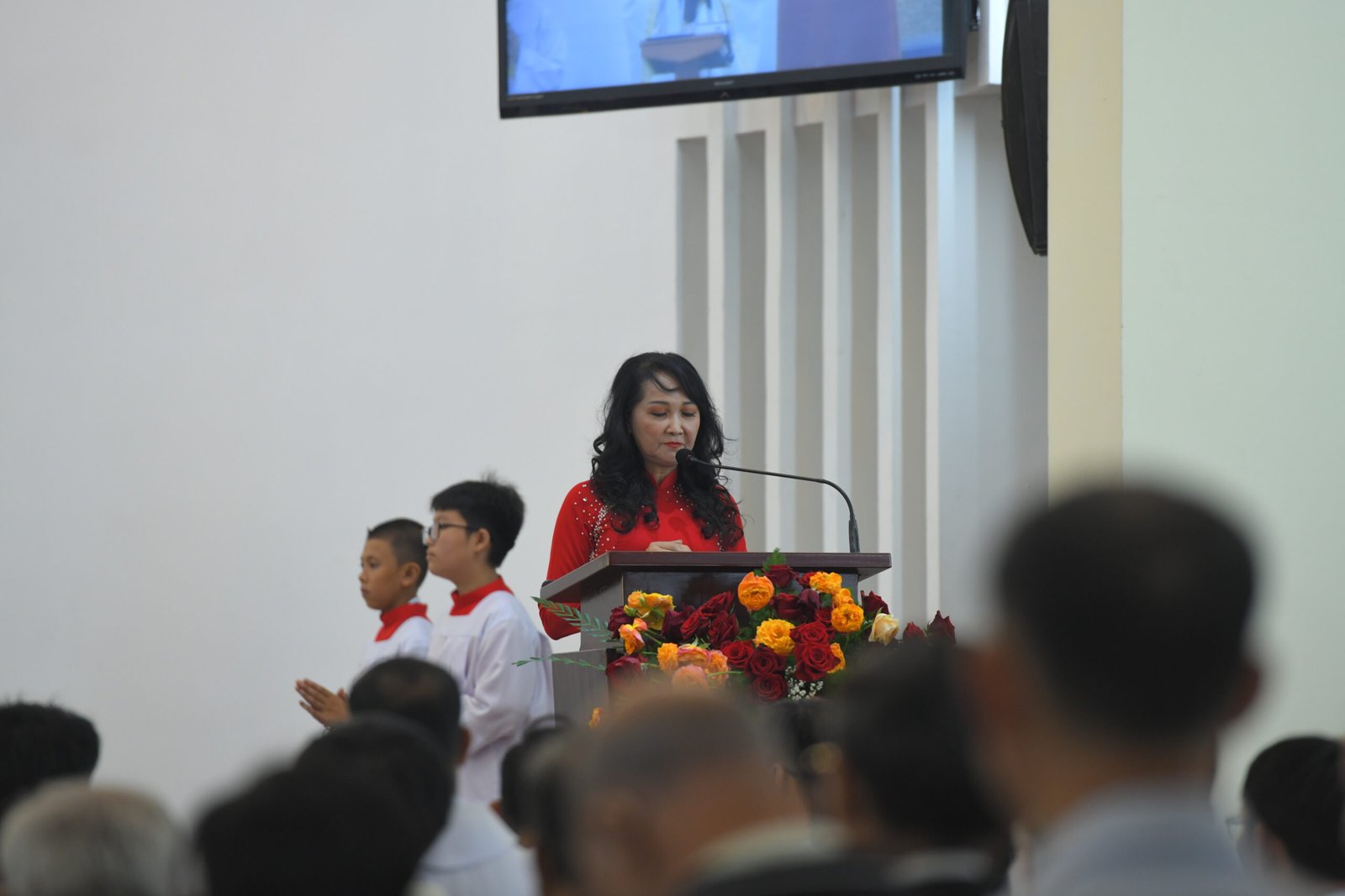 Sau phần hiệp lễ, ông Chủ tịch Hội Đồng Mục Vụ Giáo Xứ đã có lời cảm ơn đến Đức Tổng Giám mục Giuse, Cha Giám tỉnh Barnaba, quý cha đồng tế và cộng đoàn. Trong phần đáp từ, Đức tổng Giuse đã chúc mừng Giáo xứ nhân dịp kỷ niệm 60 năm Thành lập và 20 năm Cung hiến, đồng thời Ngài cũng nhắc nhở cộng đoàn giáo xứ cần phải siêng năng học hỏi Lời Chúa và đem Chúa đến cho mọi người xung quanh.