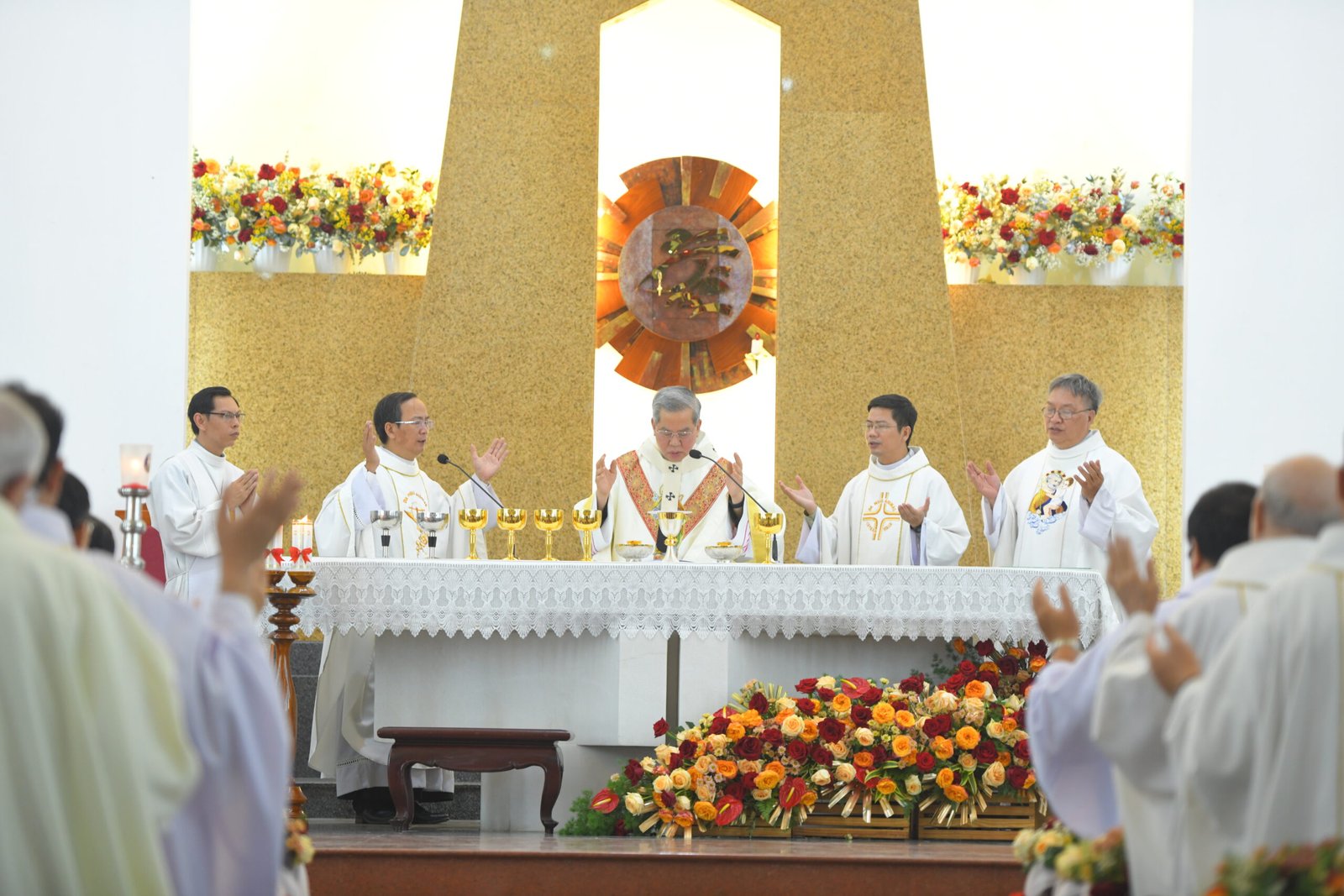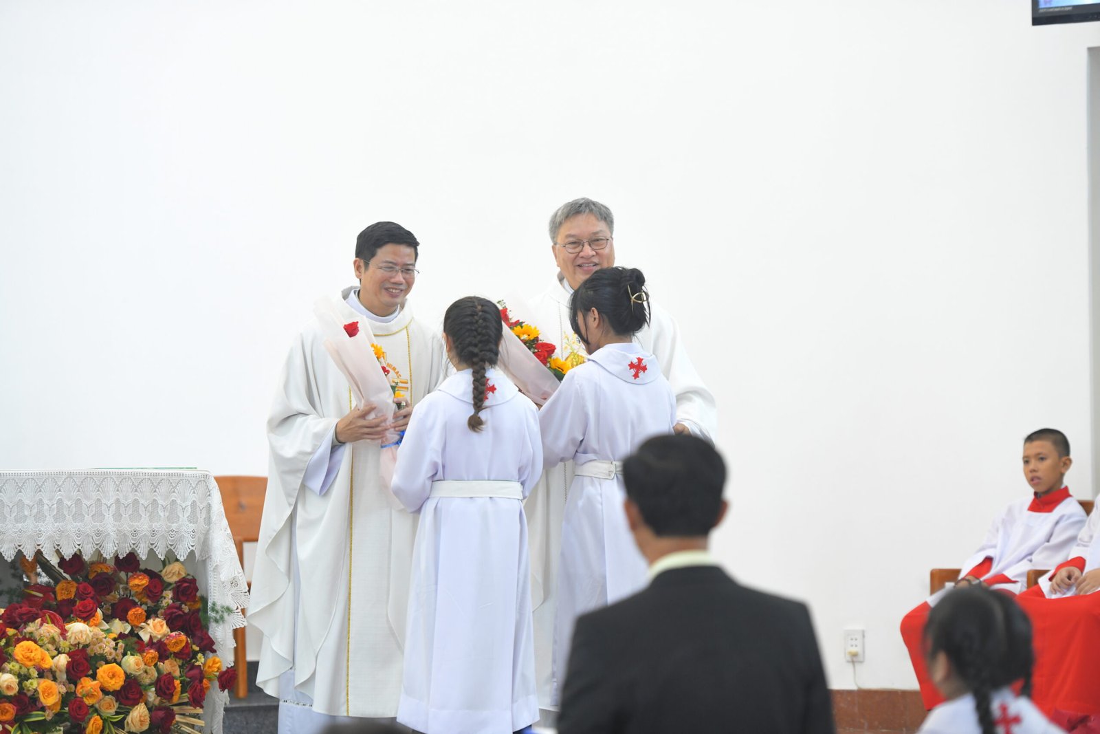 Đồng tế trong Thánh lễ, có Cha Giám Tỉnh Barnaba Lê An Phong, SDB, Cha Quản hạt Gò Vấp Giuse Phạm Đức Tuấn (chánh xứ Hạnh Thông Tây) và Quý Cha, quý thầy trong Tỉnh dòng, trong giáo hạt và một số dòng tu lân cận.