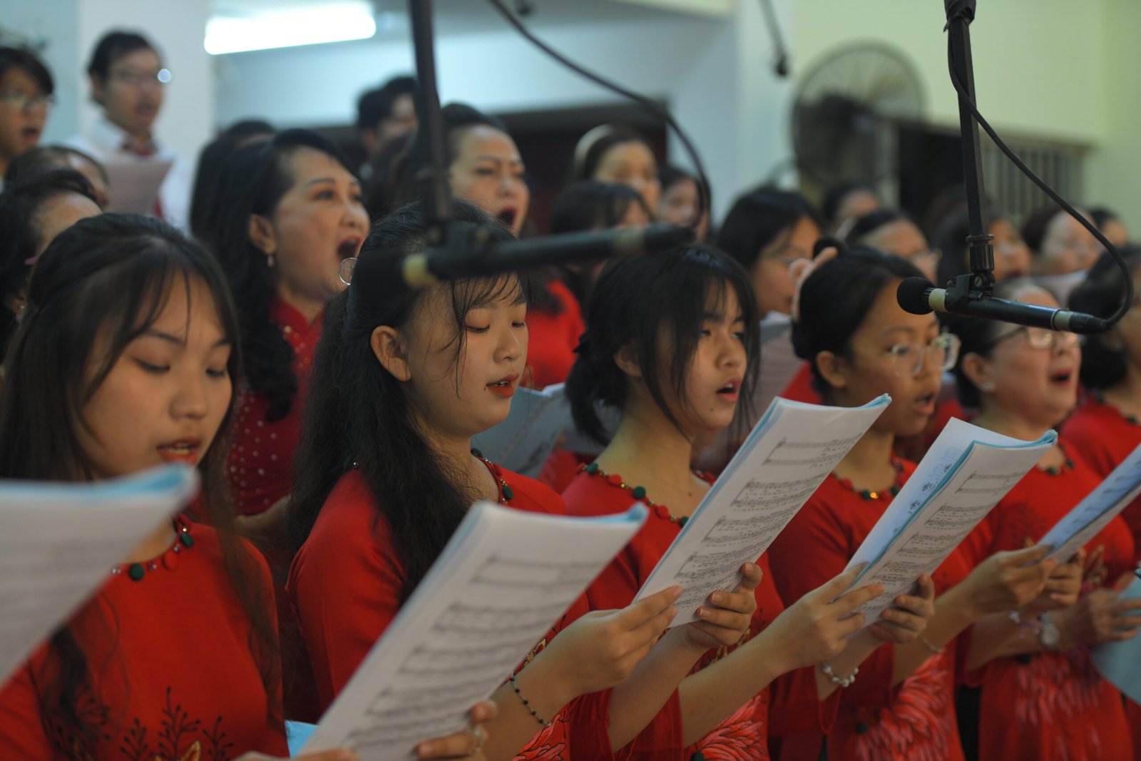 Sau Thánh lễ, mọi người đã cùng nhau lưu lại những khoảnh khắc đáng nhớ và chia sẻ niềm vui với nhau trong bữa cơm tại hội trường giáo xứ.