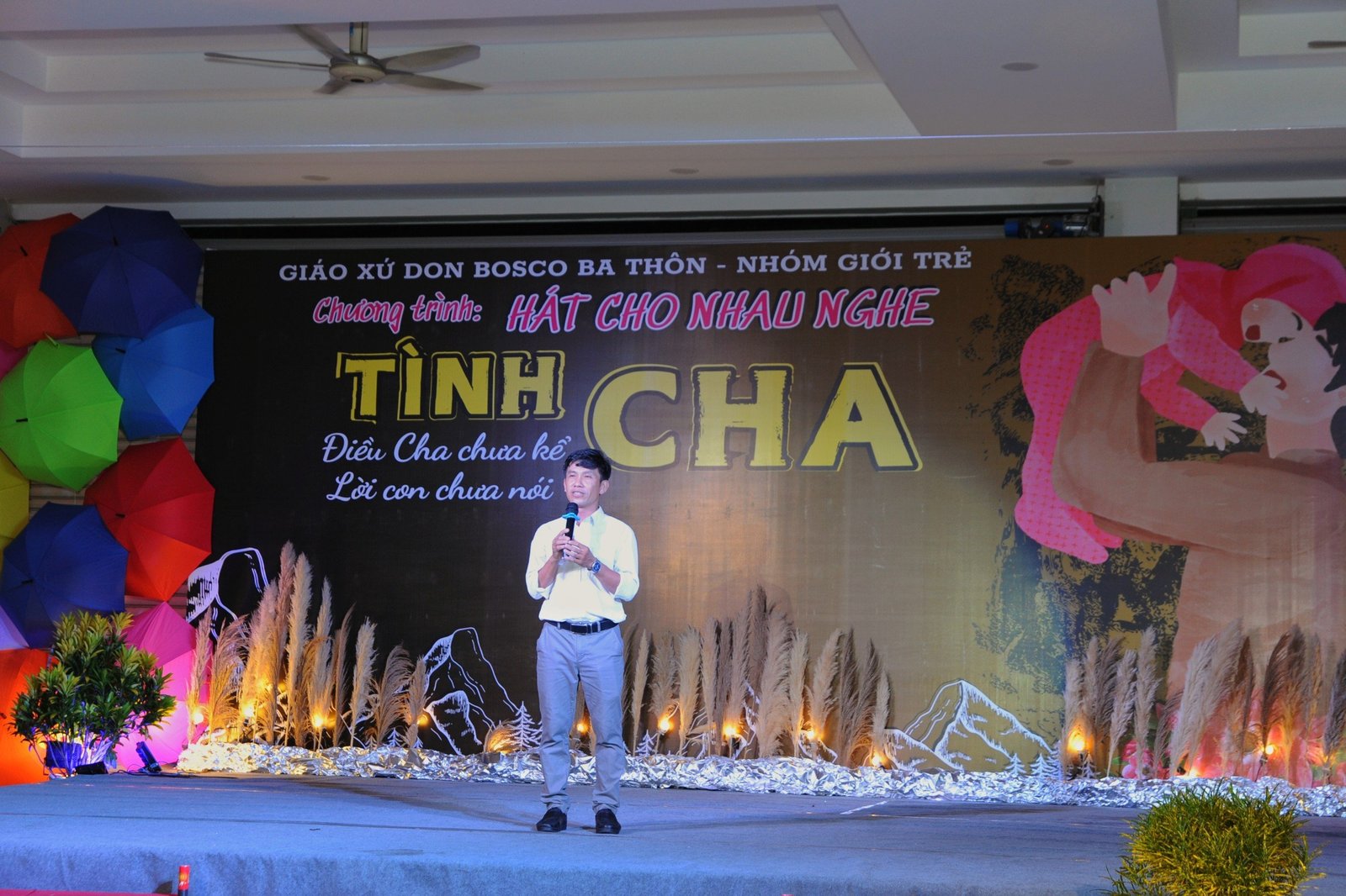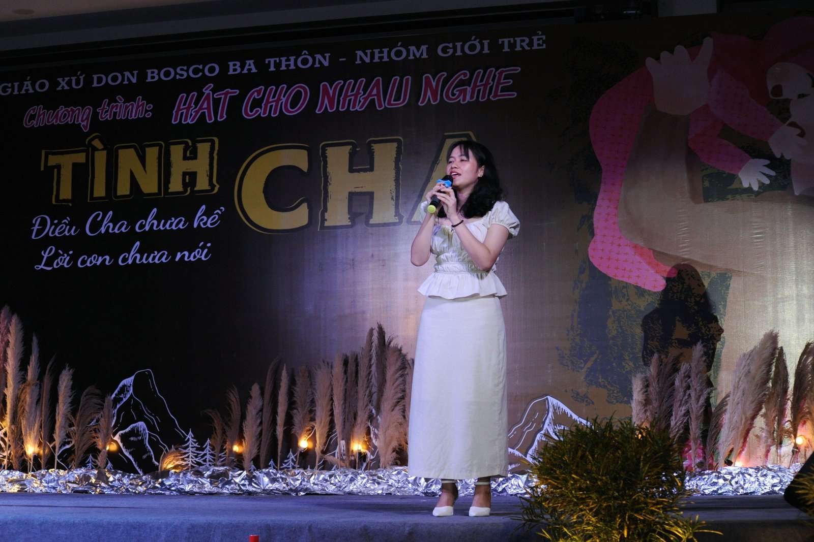 Đêm văn nghệ diễn ra với chủ đề: “Tình Cha”, đã được các bạn Giới trẻ cũng như khách mời thể hiện các ca khúc về người cha thật tâm tình sâu lắng. Qua đó thể hiện tâm tình biết ơn về tất cả những hy sinh gian khó mà đấng sinh thành dưỡng dục đã và đang làm cho con cái của mình.