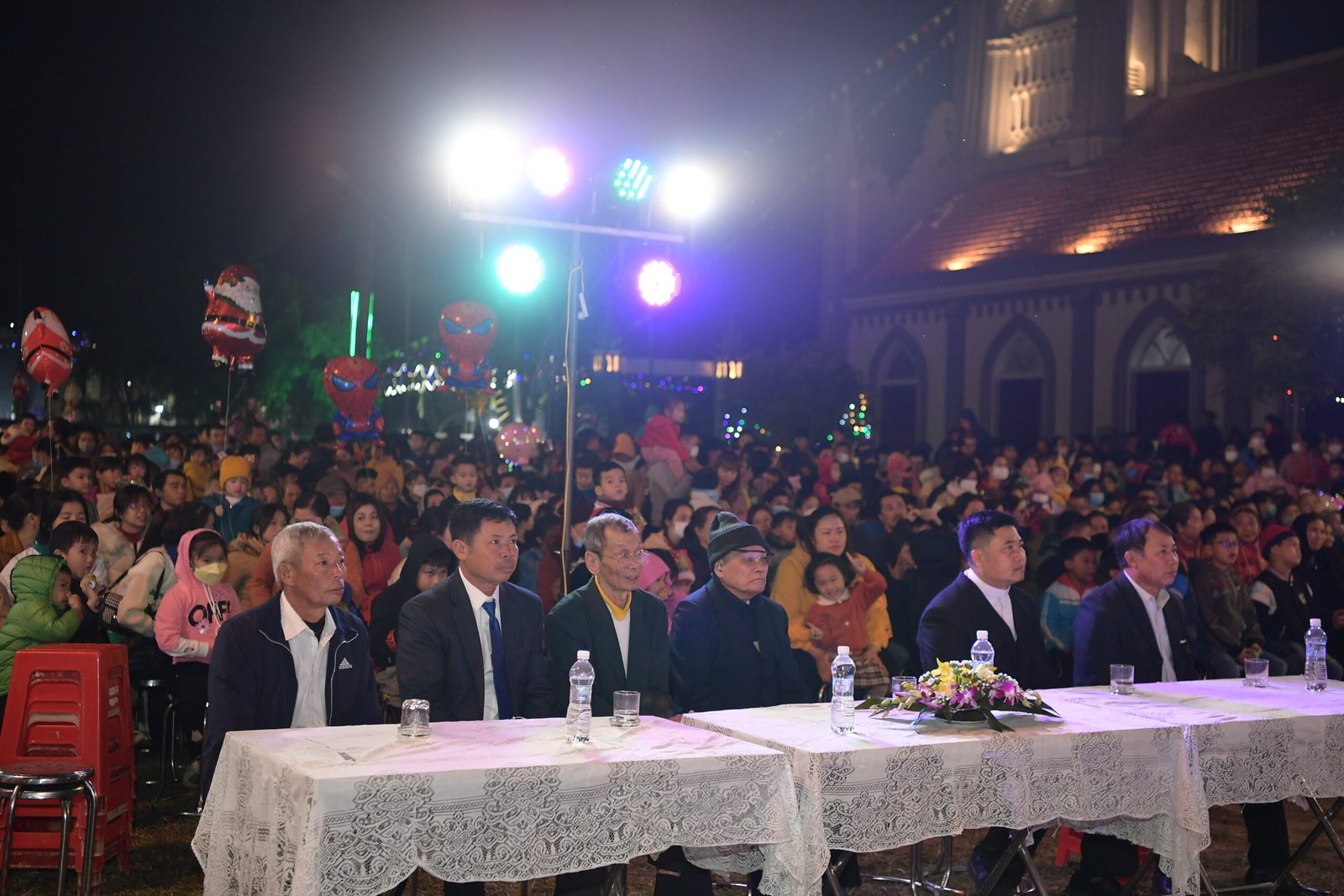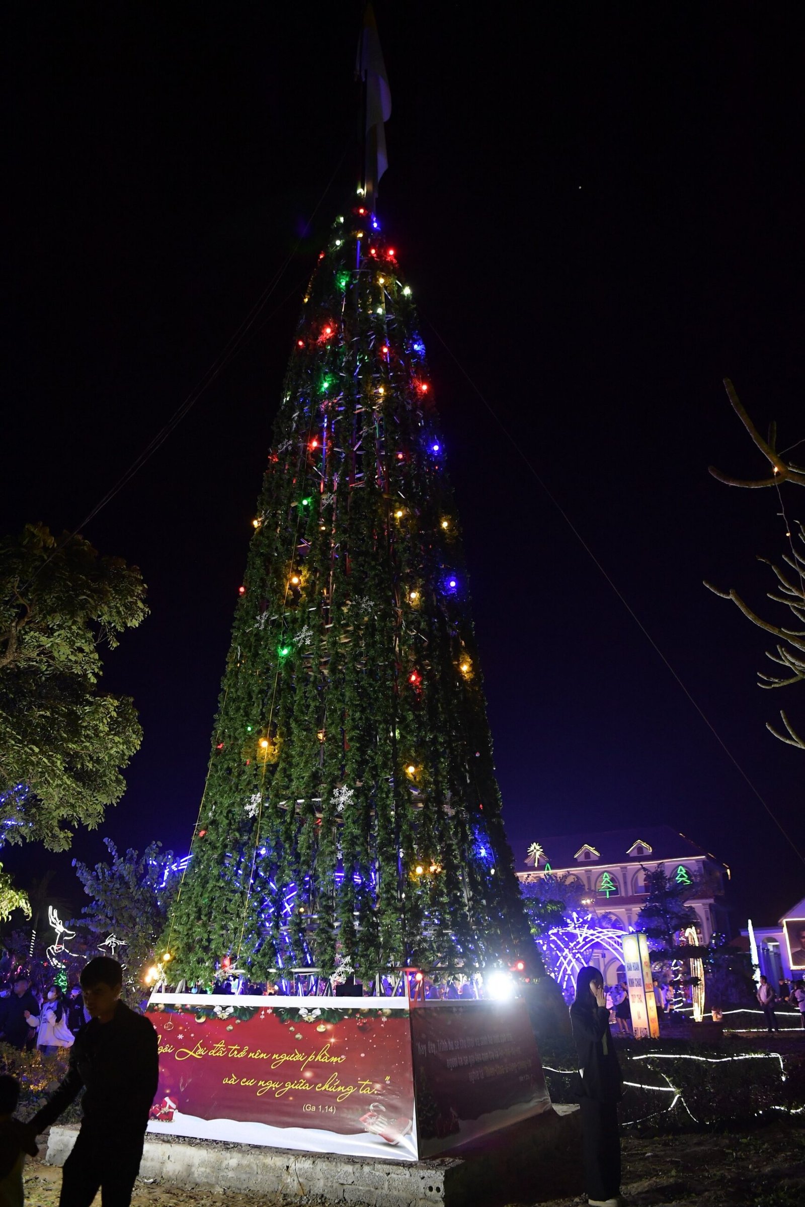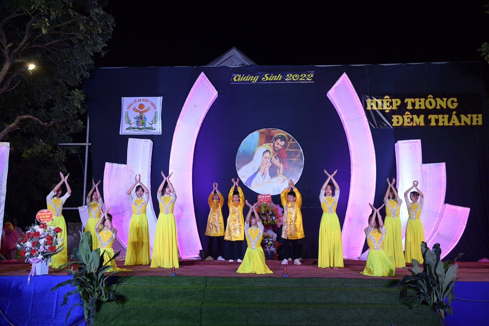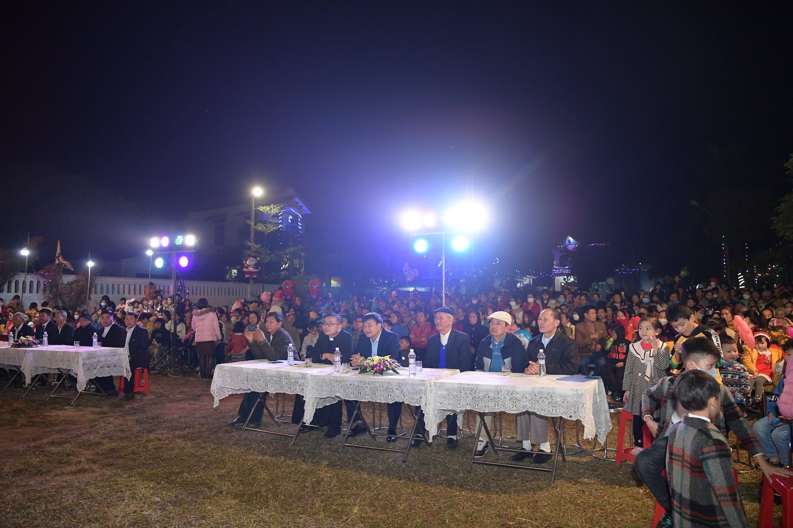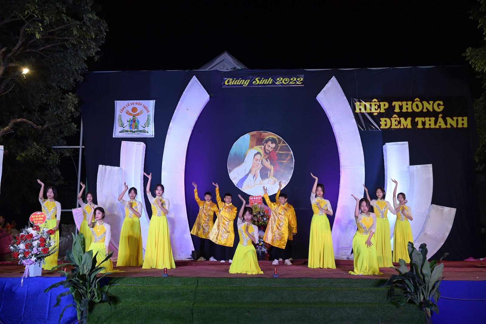 Càng gần đến giờ diễn ra chương trình, người người ngày càng thêm đông. Mọi người đến để tham quan, để check in… trong đó cũng có những người thành tâm thiện chí âm thầm lặng lẽ theo dõi từ đầu đến cuối, kể cả tham dự Thánh lễ. Chương trình diễn ra với không gian sân khấu do các bạn giới trẻ cùng với Cha xứ lên ý tưởng, tìm vật liệu sao cho phù hợp với khả năng mình có được, không phải là những tấm poster in ấn nhanh gọn, tiện lợi, mà là sự chăm chút tỉ mỉ dù mất thời gian, nhưng lại có sự sáng tạo của những người trẻ. Một điểm son trong chương trình đó chính là sự bản lĩnh và sáng tạo của các bạn huynh trưởng và các MC. Khi các bạn biết rằng năm nay không có các Sơ về giúp trong màu Giáng Sinh, lúc đầu các bạn cũng rất lo lắng, nhưng rồi với sự cố gắng học hỏi, tìm tòi và cộng tác với nhau, các huynh trưởng đã khéo léo xây dựng một kịch bản hấp dẫn với những khúc kịch tính cao trào.