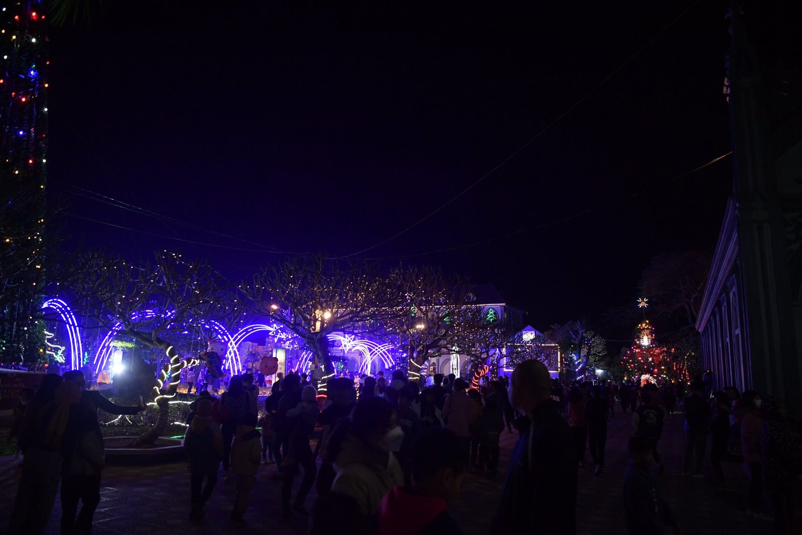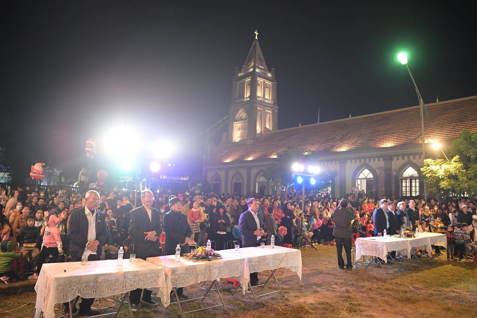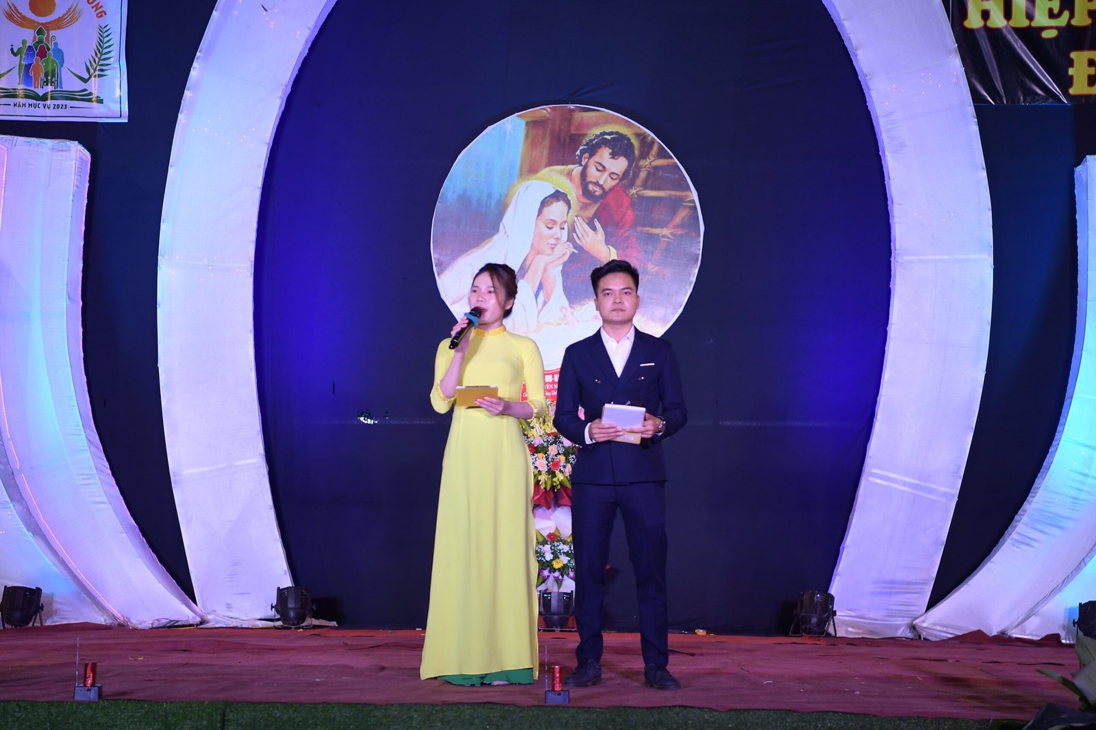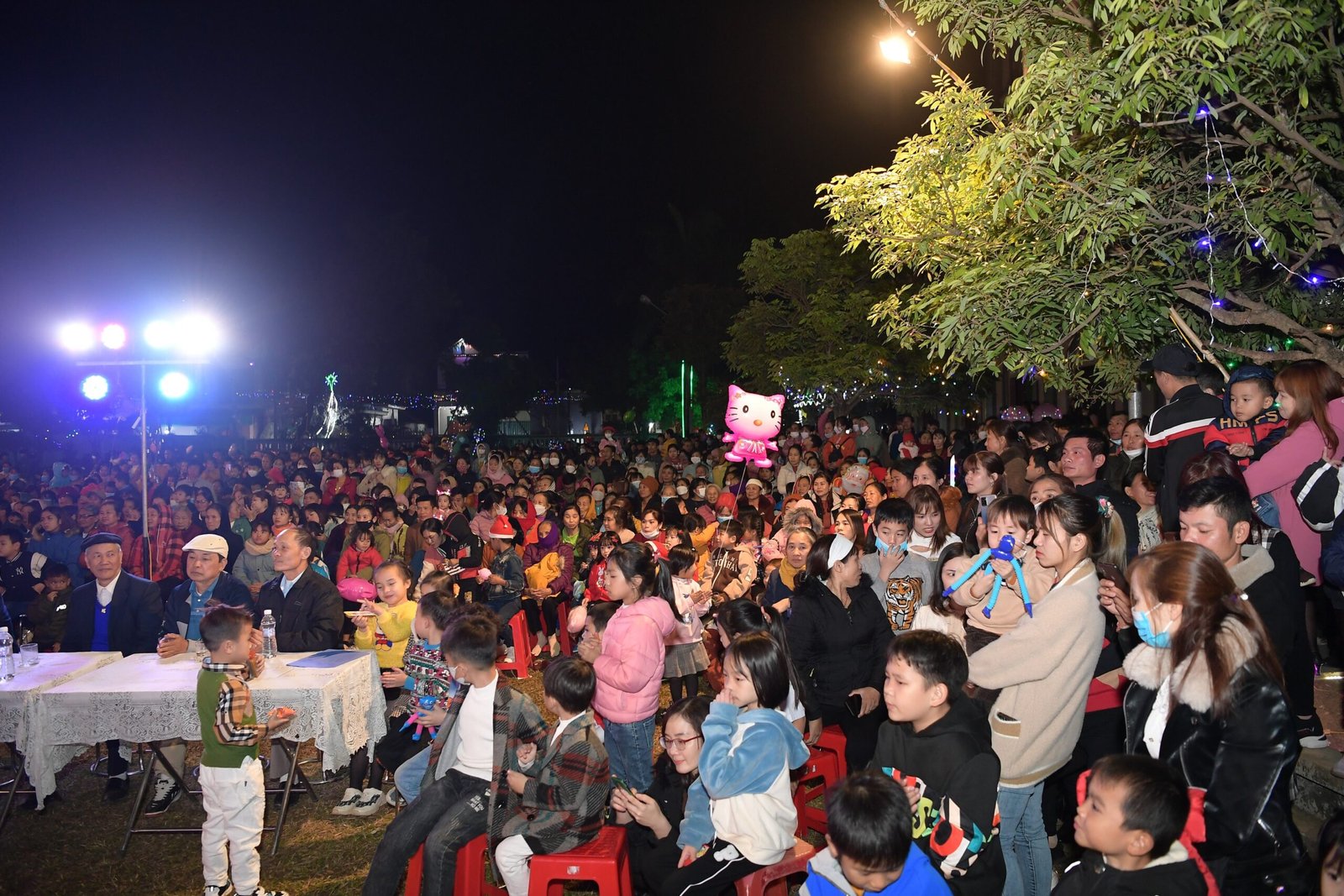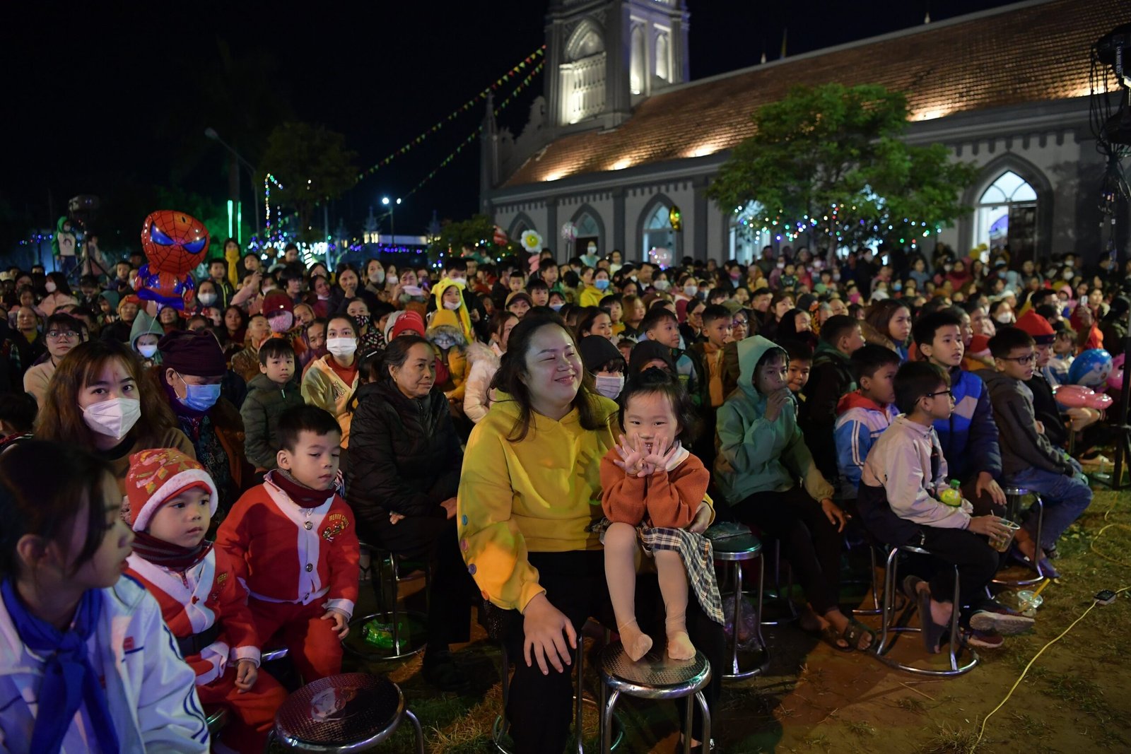 Càng gần đến giờ diễn ra chương trình, người người ngày càng thêm đông. Mọi người đến để tham quan, để check in… trong đó cũng có những người thành tâm thiện chí âm thầm lặng lẽ theo dõi từ đầu đến cuối, kể cả tham dự Thánh lễ. Chương trình diễn ra với không gian sân khấu do các bạn giới trẻ cùng với Cha xứ lên ý tưởng, tìm vật liệu sao cho phù hợp với khả năng mình có được, không phải là những tấm poster in ấn nhanh gọn, tiện lợi, mà là sự chăm chút tỉ mỉ dù mất thời gian, nhưng lại có sự sáng tạo của những người trẻ. Một điểm son trong chương trình đó chính là sự bản lĩnh và sáng tạo của các bạn huynh trưởng và các MC. Khi các bạn biết rằng năm nay không có các Sơ về giúp trong màu Giáng Sinh, lúc đầu các bạn cũng rất lo lắng, nhưng rồi với sự cố gắng học hỏi, tìm tòi và cộng tác với nhau, các huynh trưởng đã khéo léo xây dựng một kịch bản hấp dẫn với những khúc kịch tính cao trào.