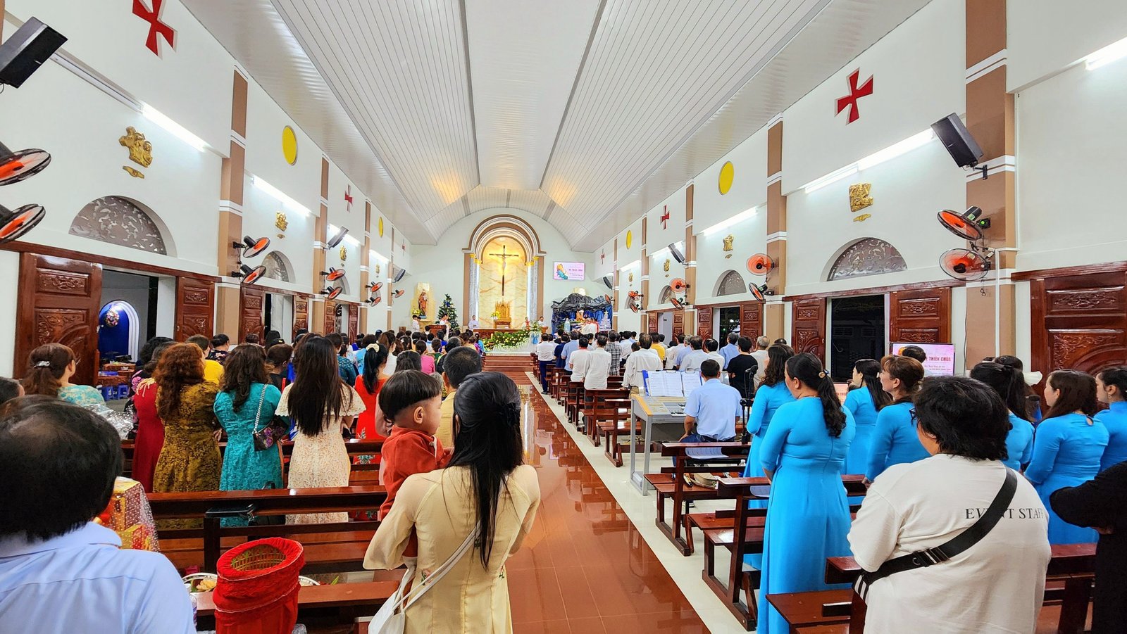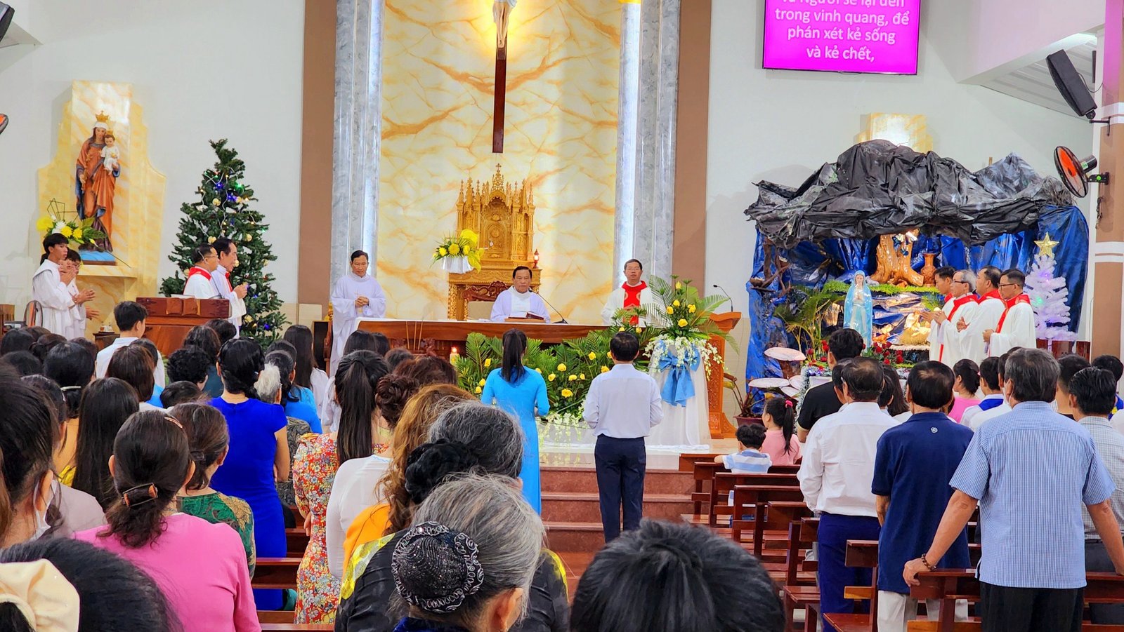 Ngày đầu năm mới dương lịch 01/01/2024, Cộng đoàn Dân Chúa Giáo xứ Tắc Vân đã cùng nhau quy tụ với quý Cha Quản hạt, quý Cha Dòng Don Bosco, quý khách trong và ngoài họ đạo mừng lễ Đức Maria – Mẹ Thiên Chúa, Bổn mạng của Giáo xứ.
