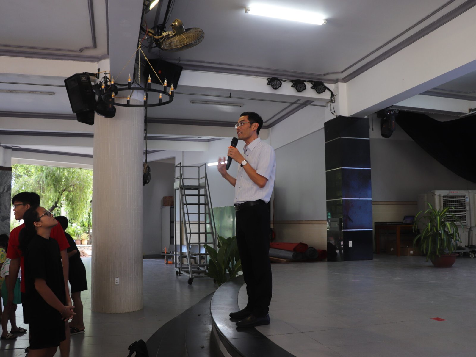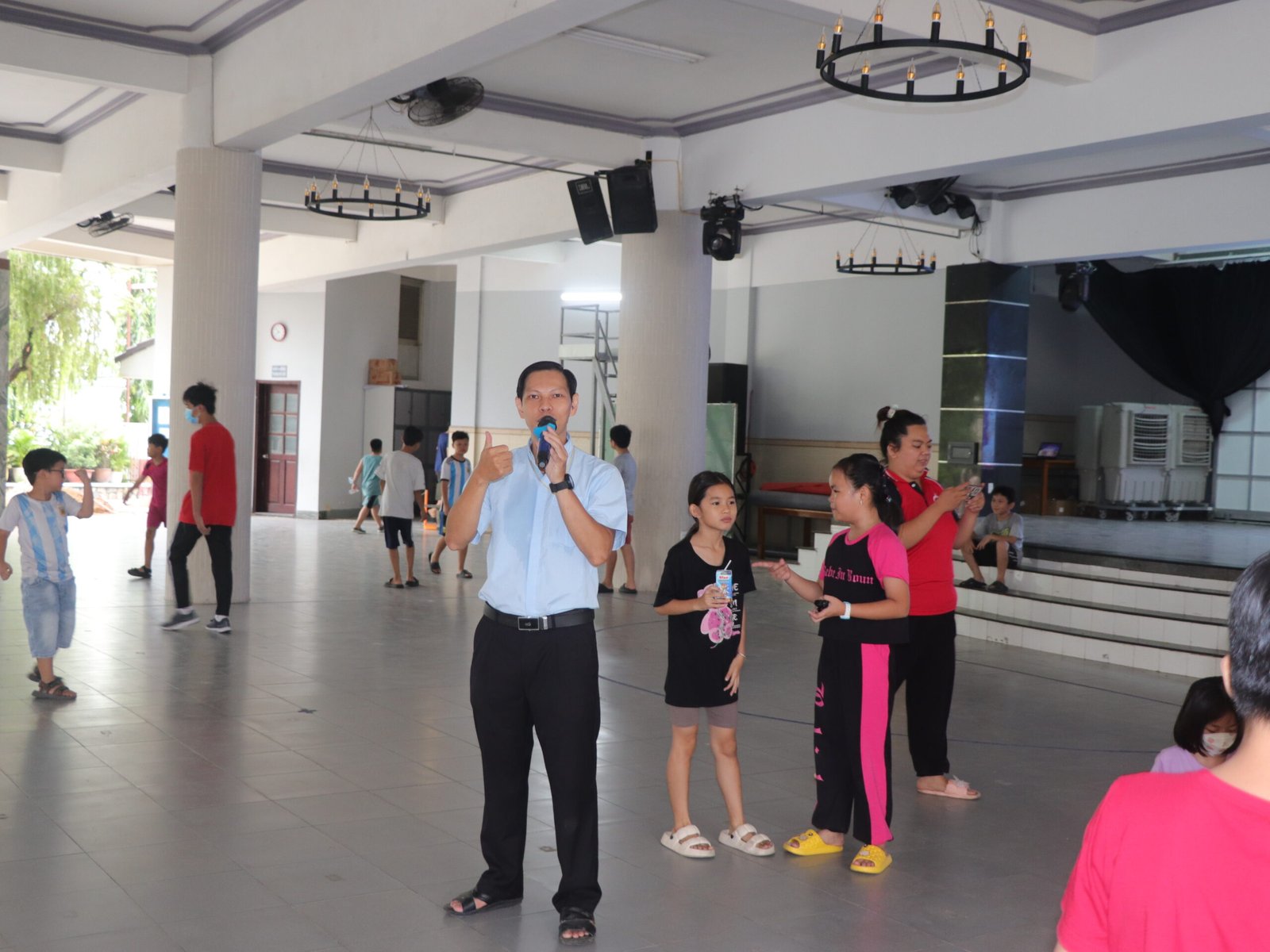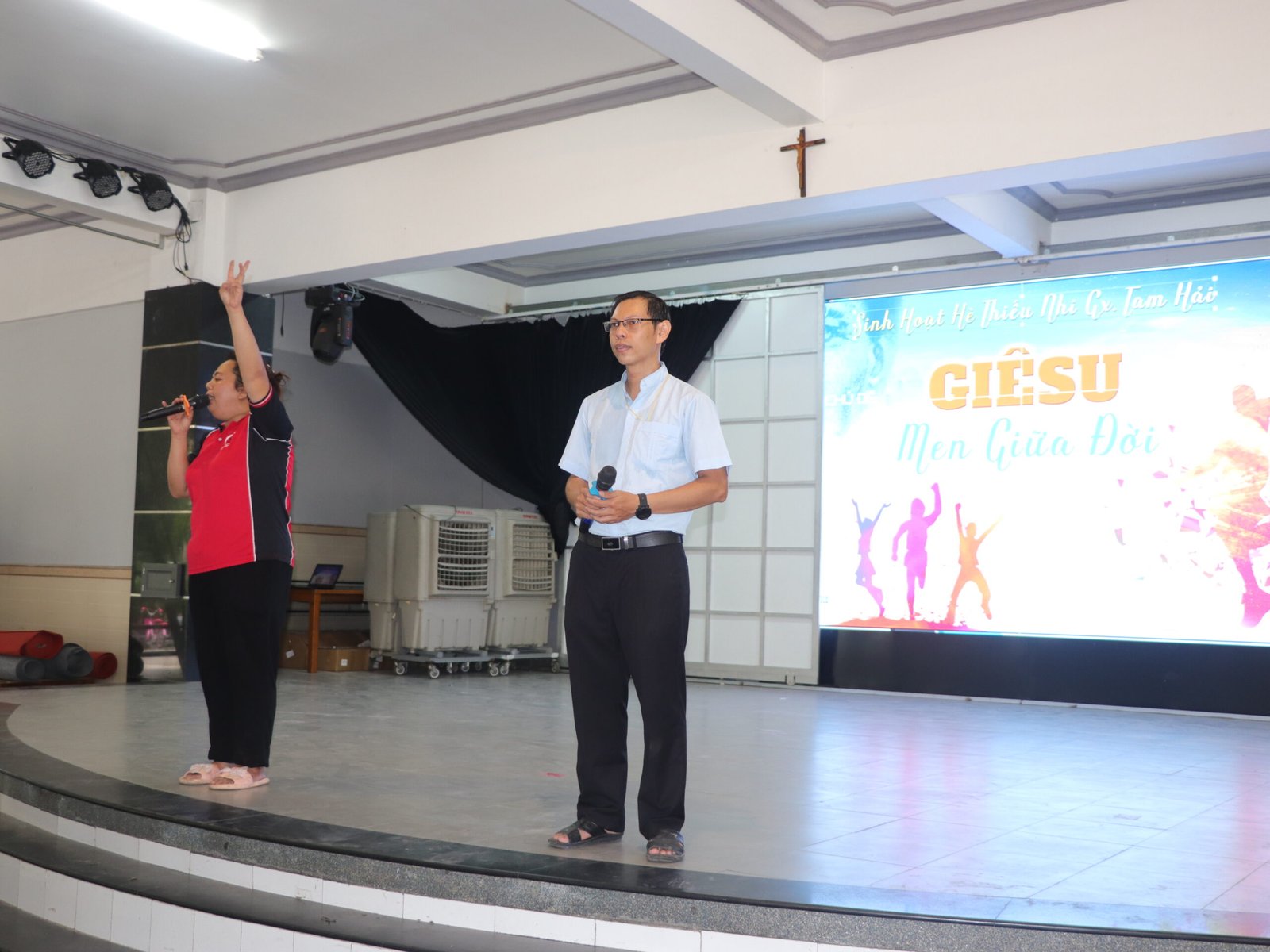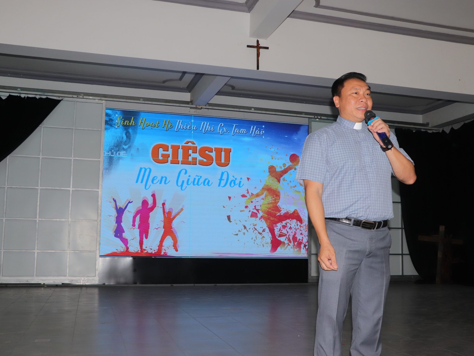 Tiếp đến, cha Chánh xứ Phêrô Phạm Quốc Hùng. Sdb đã lên thánh hóa và khai mạc chương trình sinh hoạt hè 2023. Cha Phêrô nhắn nhủ đến các bạn trẻ hãy hết mình vui chơi và học tập trong những tháng hè này. Đây là sân chơi dành cho các em, hãy luôn hết mình trong những trò chơi tập thể cũng như những môn năng khiếu, những bài học mà các em sẽ được quý Thầy, các anh Tu sinh và các anh chị GLV hướng dẫn.