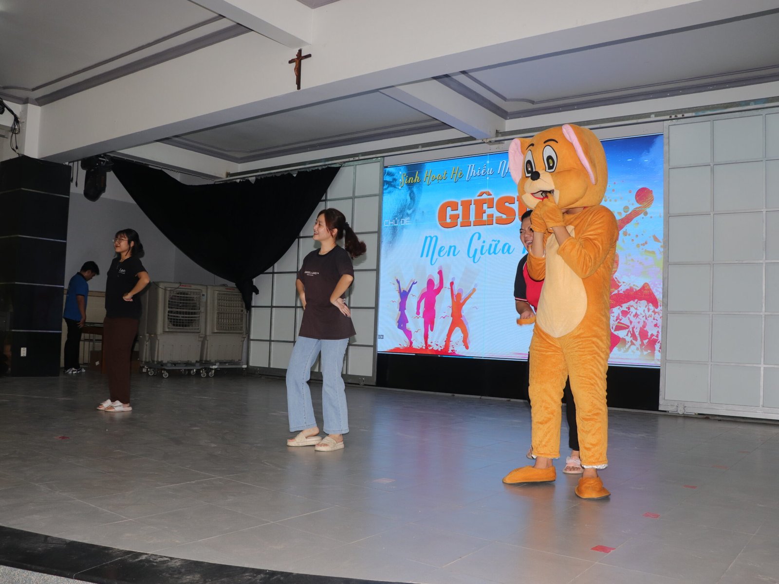 Mở đầu cho chương trình khai mạc hè 2023, các anh chị GLV, các anh Tu sinh cùng với các bạn trẻ hô to băng reo khai mạc hè và nhảy theo bài hát chủ đề “Như Giêsu” để chào đón mùa sinh hoạt mới. Những giây phút đầu của ngày khai mạc trở nên sống động và hấp dẫn hơn khi mọi người cùng hô lớn băng reo và hòa theo bài ca chủ đề hè một cách sôi động.