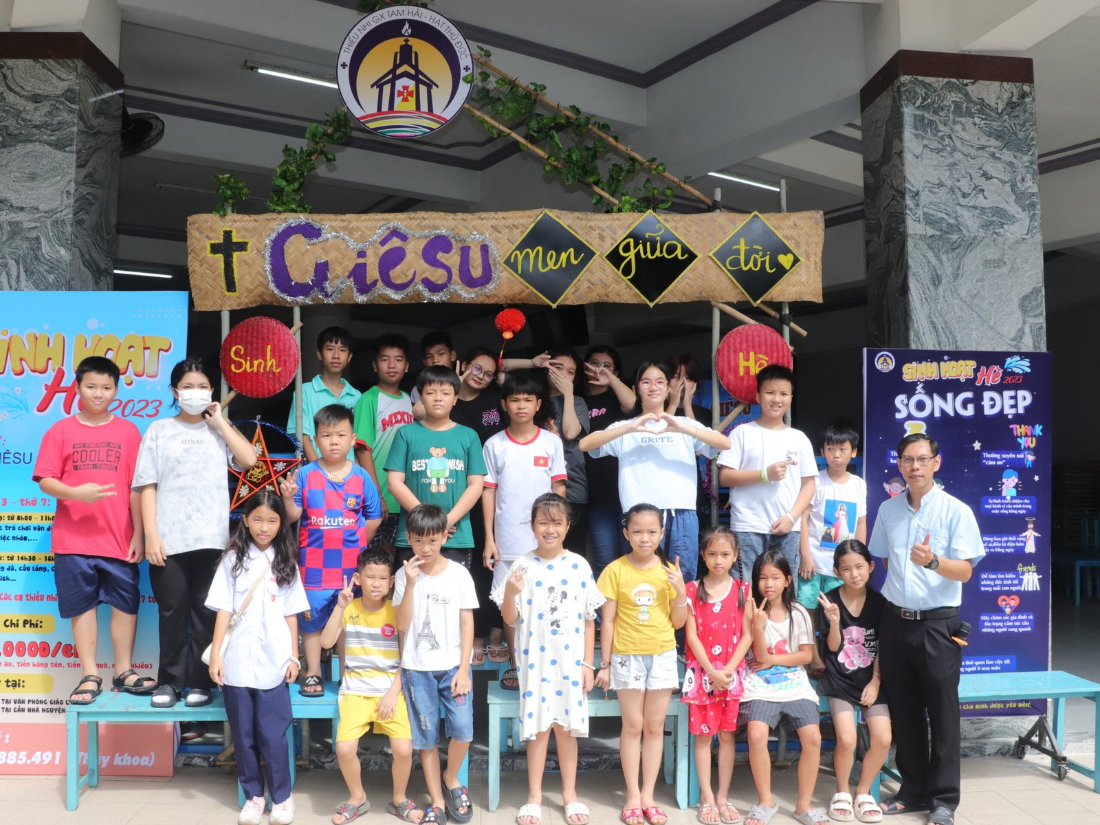 Hôm nay vào lúc 08g00’ ngày 15/06/2023, Giáo xứ Don Bosco Tam Hải đã chính thức khai mạc chương trình sinh hoạt hè 2023 với chủ đề “Giêsu – Men giữa đời” từ ngày 15/06/2023 đến ngày 22/07/2023, cho các bạn trẻ thanh thiếu niên đang sinh sống và học tập trên địa bàn giáo xứ Tam Hải. Số lượng các em đến tham dự và đăng ký sinh hoạt hè năm nay là khoảng hơn 200 em, có độ tuổi từ 8 tuổi đến 17 tuổi, không phân biệt tôn giáo.