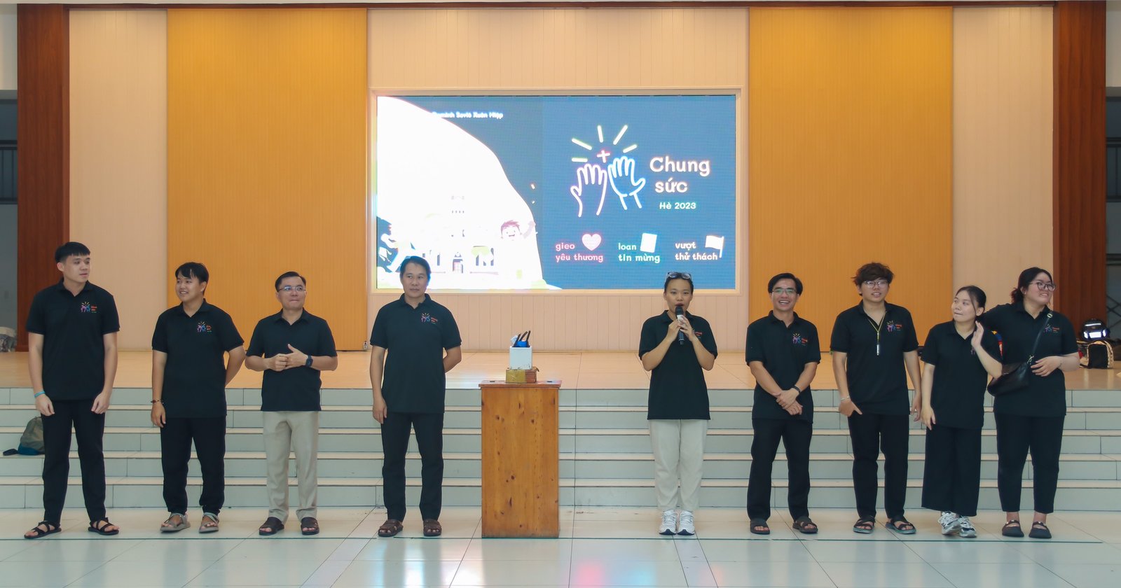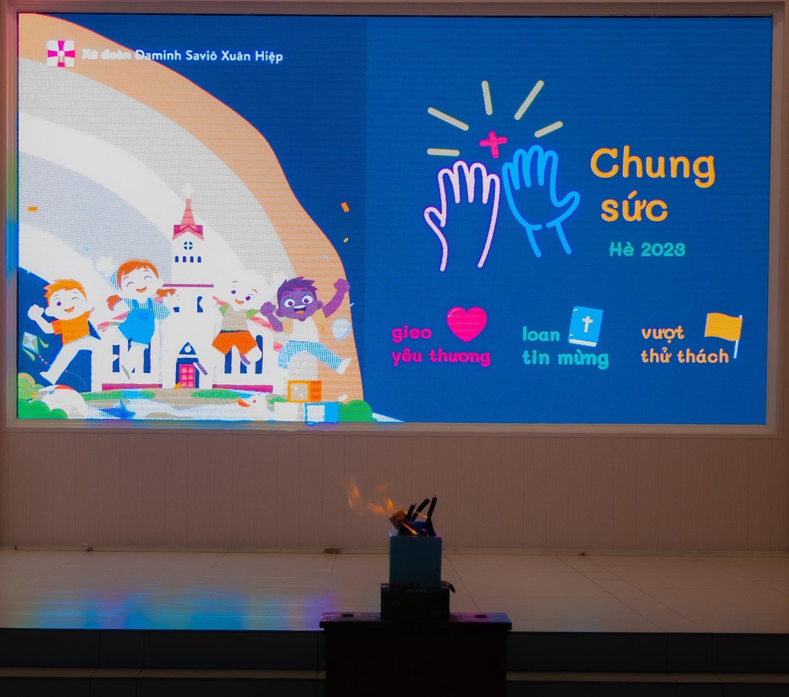 Chương trình hè đã bắt đầu từ ngày 01/06/2023, nhưng hôm nay ngày 13/06/2023, Ban tổ chức hè chính thức khai mạc lớp hè, với chủ đề: “Men Chung Sức”. Chủ đề này được Ban tổ chức hè lựa chọn dựa trên cuốn Cẩm Nang Tông Đồ Hè 2023 do Ban Mục vụ Giới trẻ biên soạn và phổ biến. Áp dụng cuốn Cẩm Nang, ban sinh động mùa hè đã triển khai ý tưởng cho cử điệu băng reo và vũ điệu bài ca chủ đề.