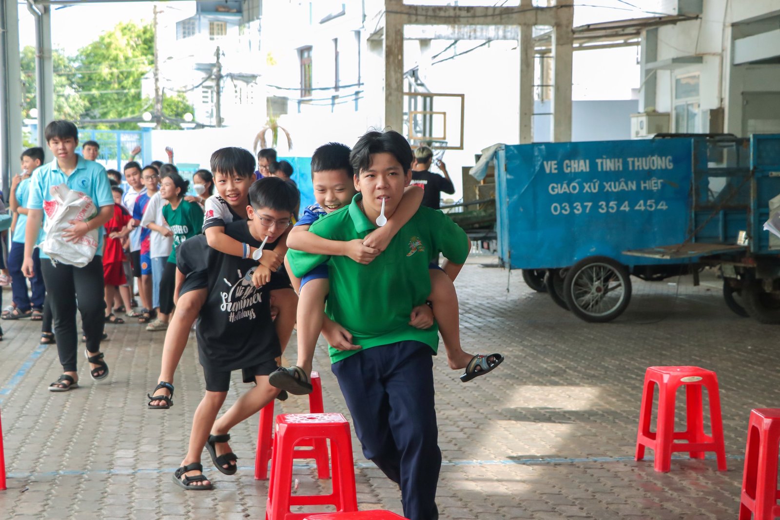 Sau những lời dặn dò đầy yêu thương , các bạn được phân chia thành nhiều đội khác nhau để tham gia các trò chơi vận động tại khuôn viên nhà thờ. Những tiếng reo hò và những trò chơi mới lạ, đã tạo nên bầu khí vui nhộn và sinh động.