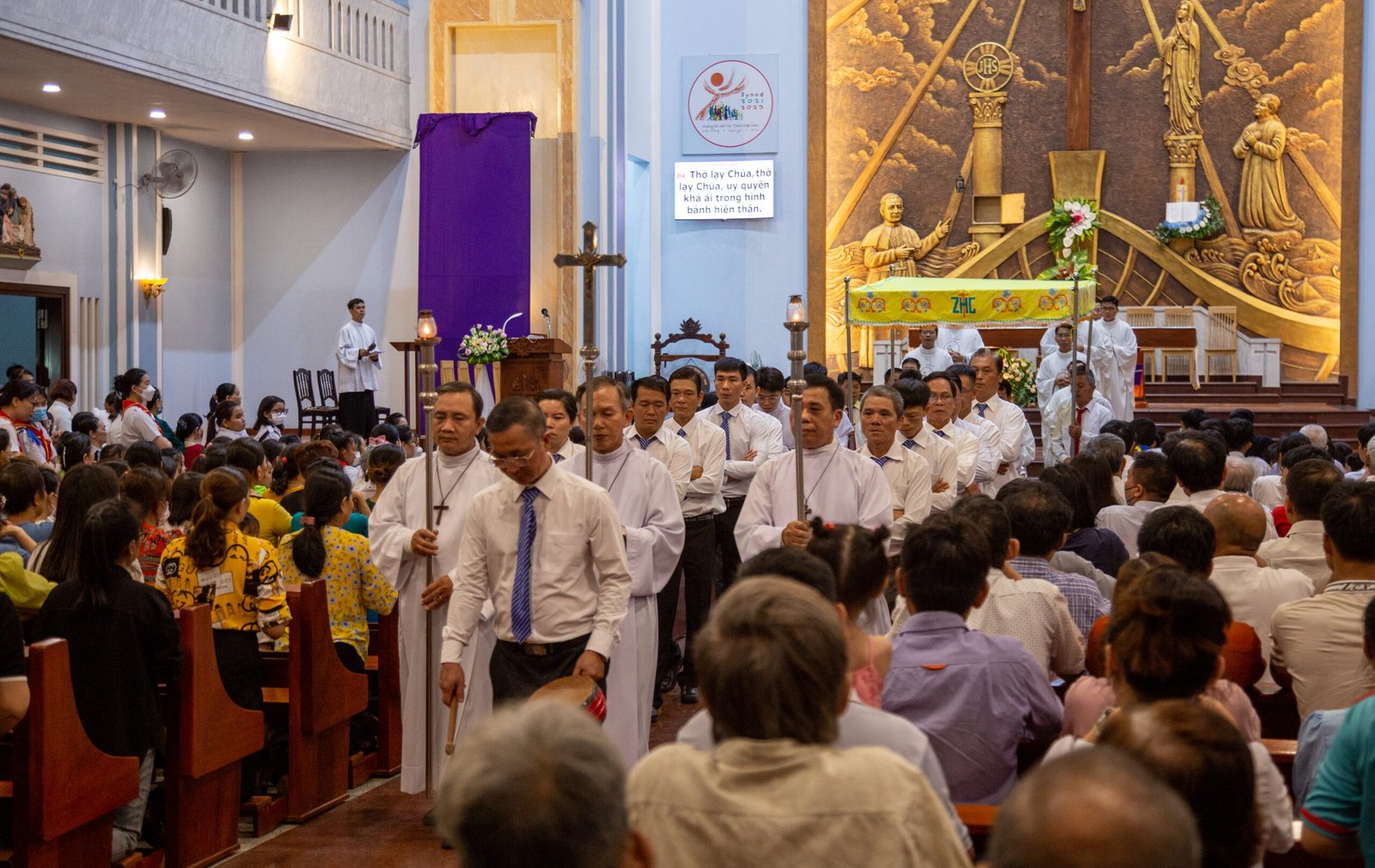 Trước Thánh lễ, thầy Chưởng nghi đã đọc một vài ý nghĩa của ngày lễ hôm nay và mời gọi cộng đoàn cùng sốt sáng hướng về đoàn đồng tế để bắt đầu Thánh lễ.