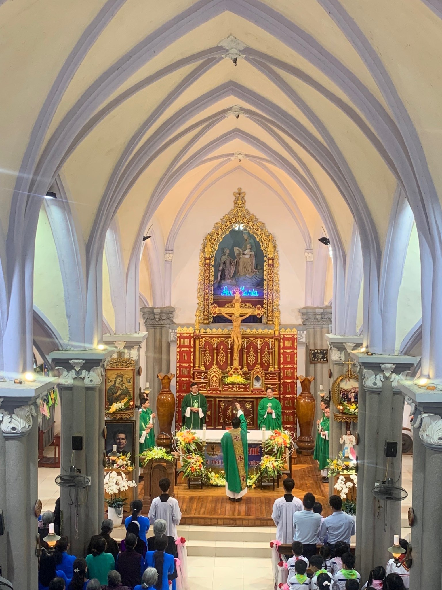 Cao điểm của tuần chầu vào Chúa Nhật VI Thường Niên, ngày 12/02/2023. Ngay sau Thánh lễ Chúa Nhật dành cho thiếu nhi do Cha Giuse Nguyễn Quốc Hùng chủ sự vừa kết thúc. Cha xứ Gioan Baotixita Dương Hoài Đức đã chính thức khai mạc ngày chầu lượt của Giáo xứ với các giờ luân phiên được phân chia cho các giáo họ, các giới, các hội đoàn và quý khách xa gần… Mọi người đều đến thông công tham dự thật sốt sắng.