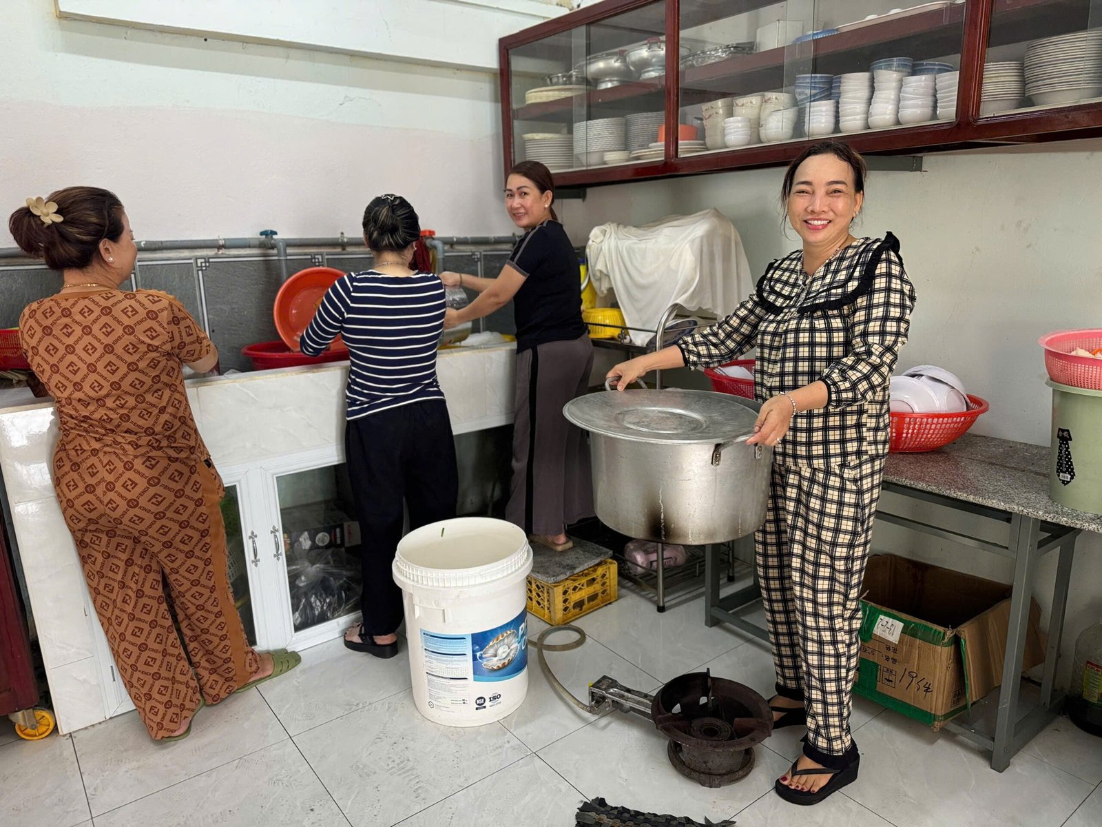 Dù công việc chuẩn bị và thu dọn khá vất vả, niềm vui phục vụ hiện rõ trên gương mặt của mỗi tình nguyện viên.