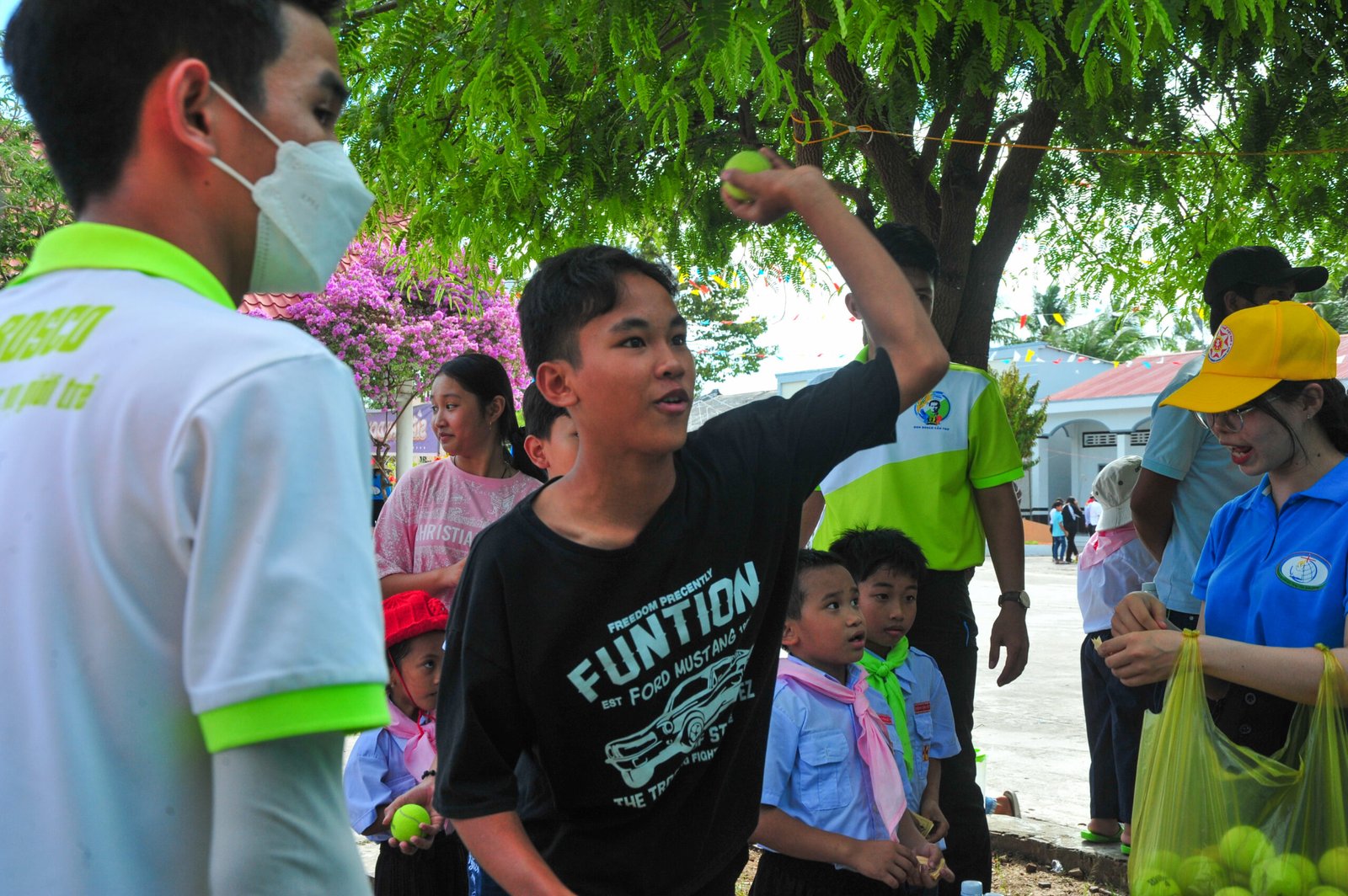Tham dự trong ngày hội chợ có sự hiện diện của Cha Phêrô Trần Hoàng Diệu – Cha chánh họ đạo Ngan Rô, Cha Phaolô Nguyễn Toàn Khoa – Đặc trách lưu xá sinh viên Don Bosco Cần Thơ, Maria Angeline Hoàng Thị Kim Oanh, Quý thầy, các bạn sinh viên Don Bosco Cần Thơ, sinh viên Chúa Quan Phòng và hơn 300 em thiếu nhi đến từ các giáo xứ lân cận khác đã tạo nên một bầu không khí vui tươi, nhộn nhịp đón mừng năm mới.