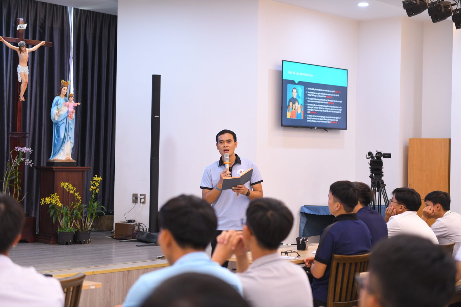 Sau giờ giải lao và thảo luận nhóm sôi nổi, buổi sáng khép lại trong tinh thần hiệp thông học hỏi: Vừa nghiêm túc đào sâu tri thức, vừa gắn liền với thao thức mục vụ nơi người trẻ, như chính tinh thần giáo dục của thánh Gioan Bosco.