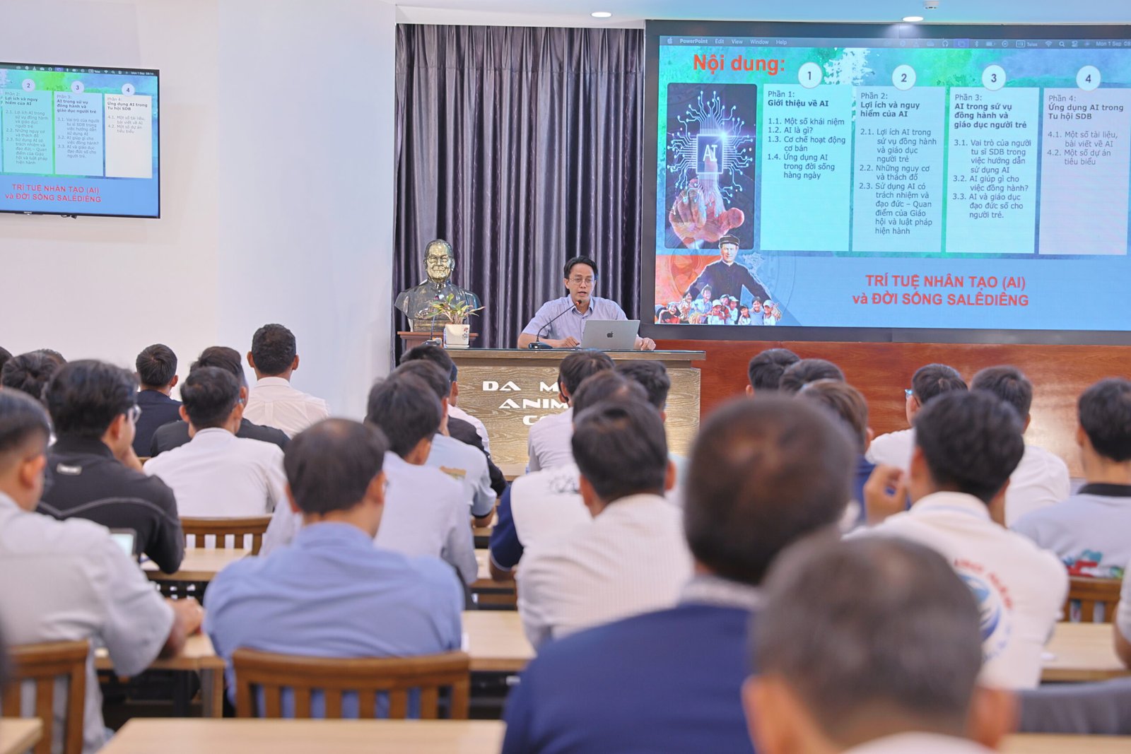 Ngày 01.09.2025, tại Nhà Tỉnh Dòng Salêdiêng Don Bosco Việt Nam, Ban Đào luyện và Ban Truyền thông đã tổ chức ngày học hỏi về chủ đề: “Trí tuệ Nhân tạo (AI) và đời sống Salêdiêng”. Sự kiện quy tụ hơn 100 tham dự viên hiện diện trực tiếp gồm quý cha, thầy, tập sinh, tiền tập và sinh viên thần học; đồng thời có sự hiệp thông trực tuyến của nhiều anh em Salêdiêng và cộng tác viên ở xa.