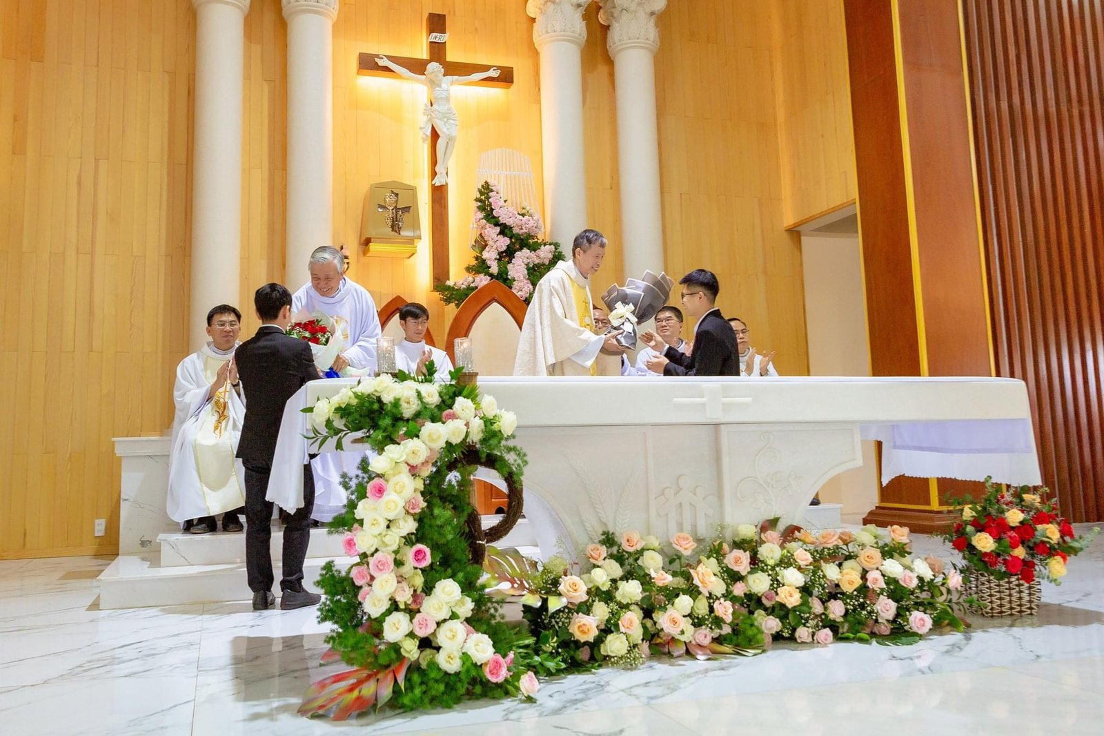 Sau thánh lễ là bữa tiệc liên hoan mừng lễ ra trường quý thầy triết 3. Mọi người cùng chung chia niềm vui và tình huynh đệ trong bầu khí vui tươi và thánh thiện.