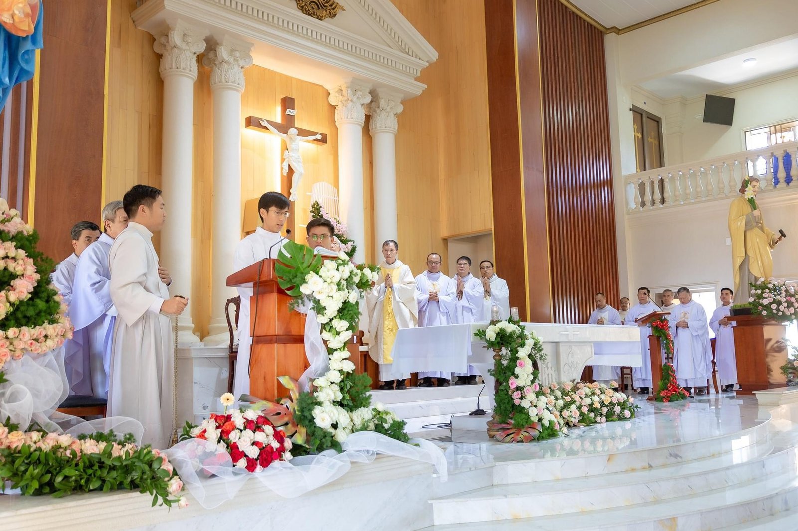 Ngày lễ ra trường được tiếp tục với Thánh Lễ Tạ Ơn tại Nhà Nguyện Giáo Sở Don Bosco Đà Lạt vào lúc 10g30. Cha Giuse Đỗ Đức Dũng đã chủ tế thánh lễ, cùng đồng tế với ngài có cha giám đốc Học viện, quý cha trong học viện, quý cha các hội dòng và quý cha giáo sư. Trong bài giảng lễ, cha chủ tế nhắc đến bổn phận và trách nhiệm của người tu sĩ, biết sống kết hiệp với Chúa bằng tiếng thưa xin vâng, đồng thời luôn biết lắng nghe và thực hành Lời Chúa trong cuộc sống hằng ngày.