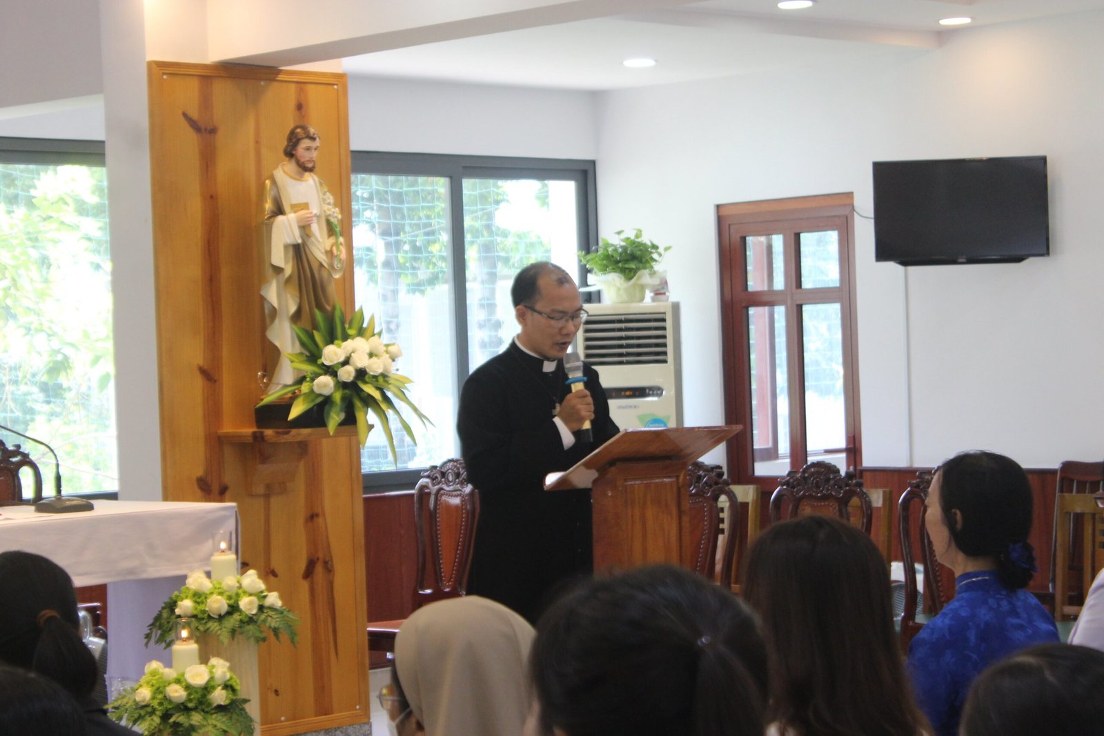 Sau giờ giải lao và chụp ảnh lưu niệm, đúng 10h30, Thánh lễ được cử hành một cách trang nghiêm và sốt sắng do cha Giám Tỉnh chủ tế. Ngài cũng nhấn mạnh đến quý thầy trong bài chia sẻ “Cần thanh luyện động cơ học tập, không phải học đơn thuần vì điểm số hay qua môn, nhưng học thần học để trở nên người mục tử nhân lành, để hiểu và sống đức tin cách mạnh mẽ và để phục vụ cho sứ mạng cho giới trẻ nghèo và bị bỏ rơi”. Những gợi ý ấy như những lời nhắc nhở và động viên khích lệ thật mạnh mẽ giúp quý thầy thêm xác quyết và nỗ lực trong việc học tập và nghiên cứu.