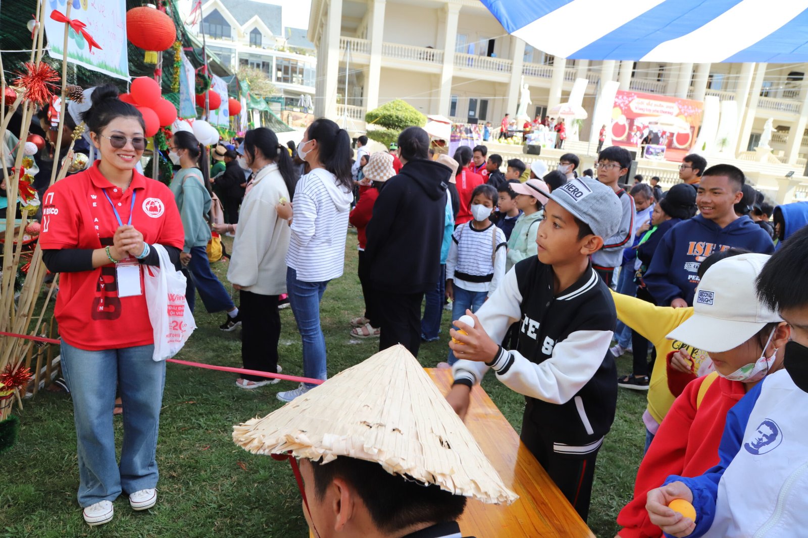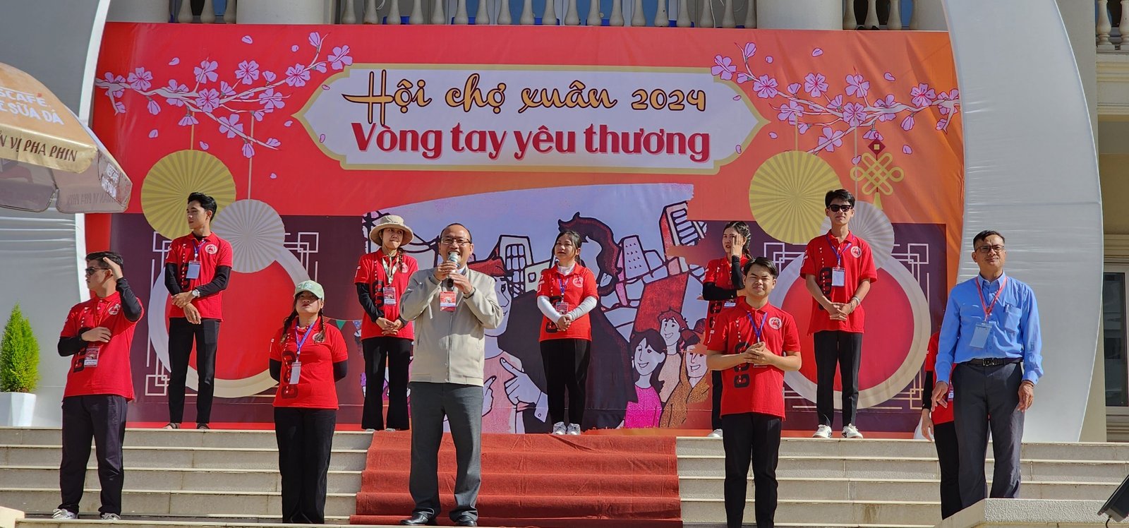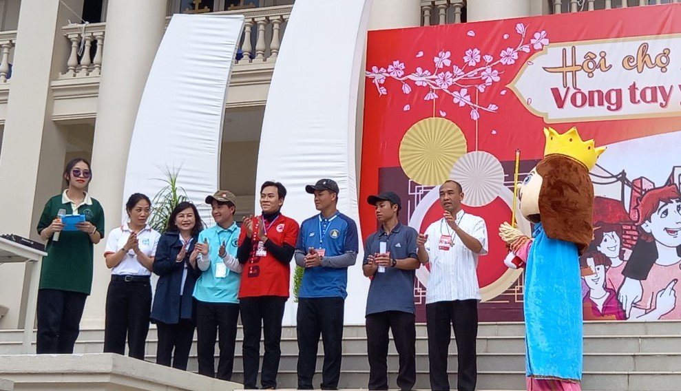 Đúng 9 giờ, tại sân bóng đá Cha Giuse Phạm Đại Quang, Phó Giám đốc Học viện Don Bosco Đà Lạt chính thức chào đón, chúc mừng năm mới đến các bạn thiếu nhi và khai mạc chương trình Hội chợ “Vòng Tay Yêu Thương”.