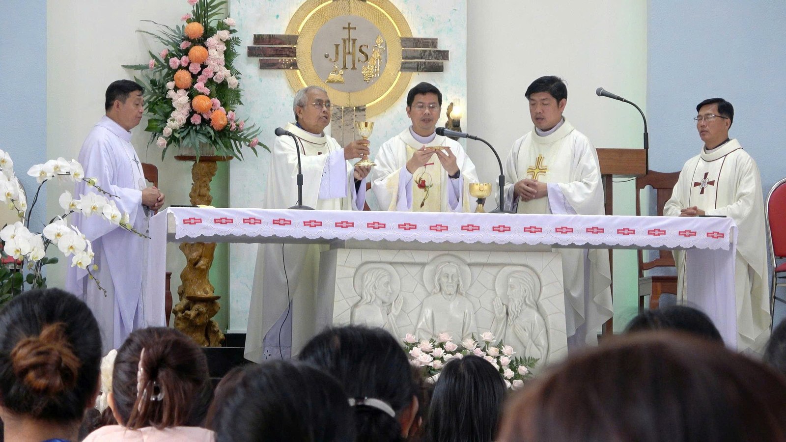 Cao điểm của ngày họp mặt là Thánh lễ đồng tế trang nghiêm tại nhà thờ Giáo xứ Nghĩa Lâm. Cha Giám Tỉnh Barnaba Lê An Phong SDB chủ tế, cùng hiệp dâng Thánh lễ với quý Cha và toàn thể cộng đoàn, cầu nguyện cho sứ mạng của Dòng và cho các giáo xứ/giáo sở trong vùng.