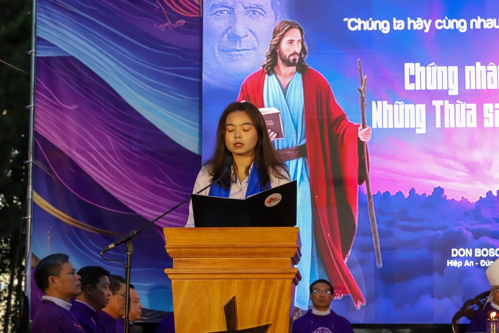 Sau bữa tối, các bạn trẻ tham gia buổi diễn nguyện Mùa Chay với các tiết mục thánh ca do Ban nhạc Chúa sai tôi đi và các ca sĩ thực hiện. Buổi diễn nguyện kết thúc với những lời huấn từ tối của Cha Phêrô, Trưởng ban Mục vụ Giới trẻ dòng Don Bosco, nhắn nhủ các bạn trẻ hãy thực hiện “Nghĩ tốt – Nói tốt – Làm tốt” khi trở về gia đình, giáo xứ và cộng đoàn.