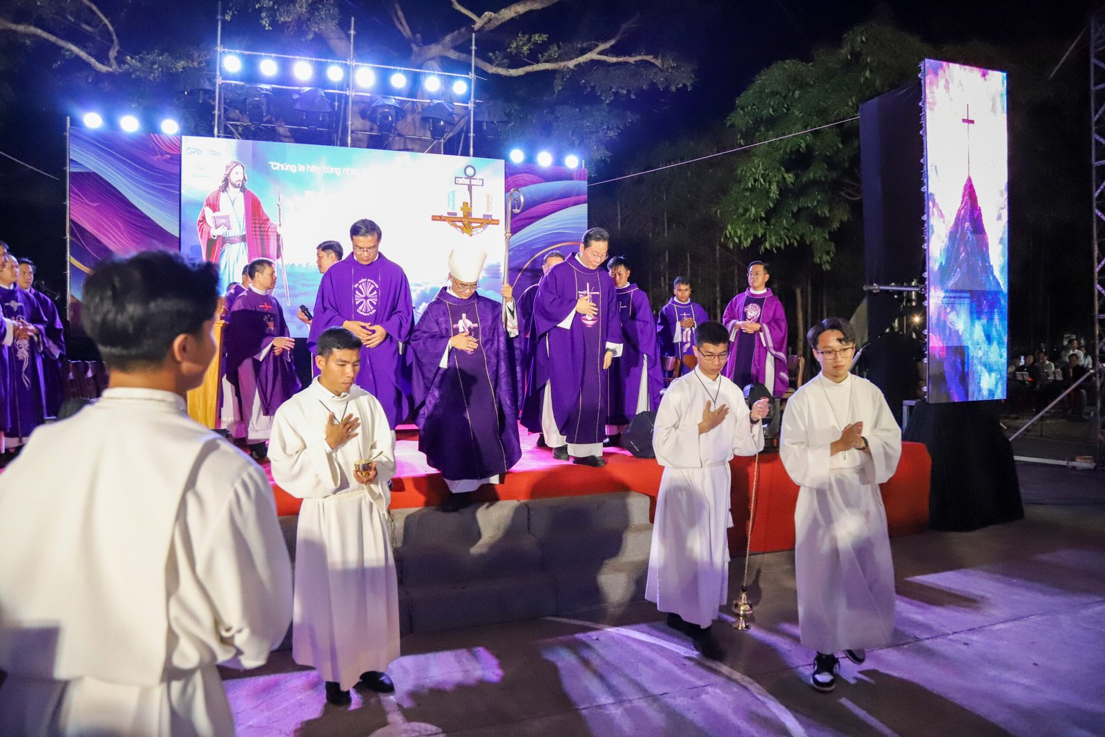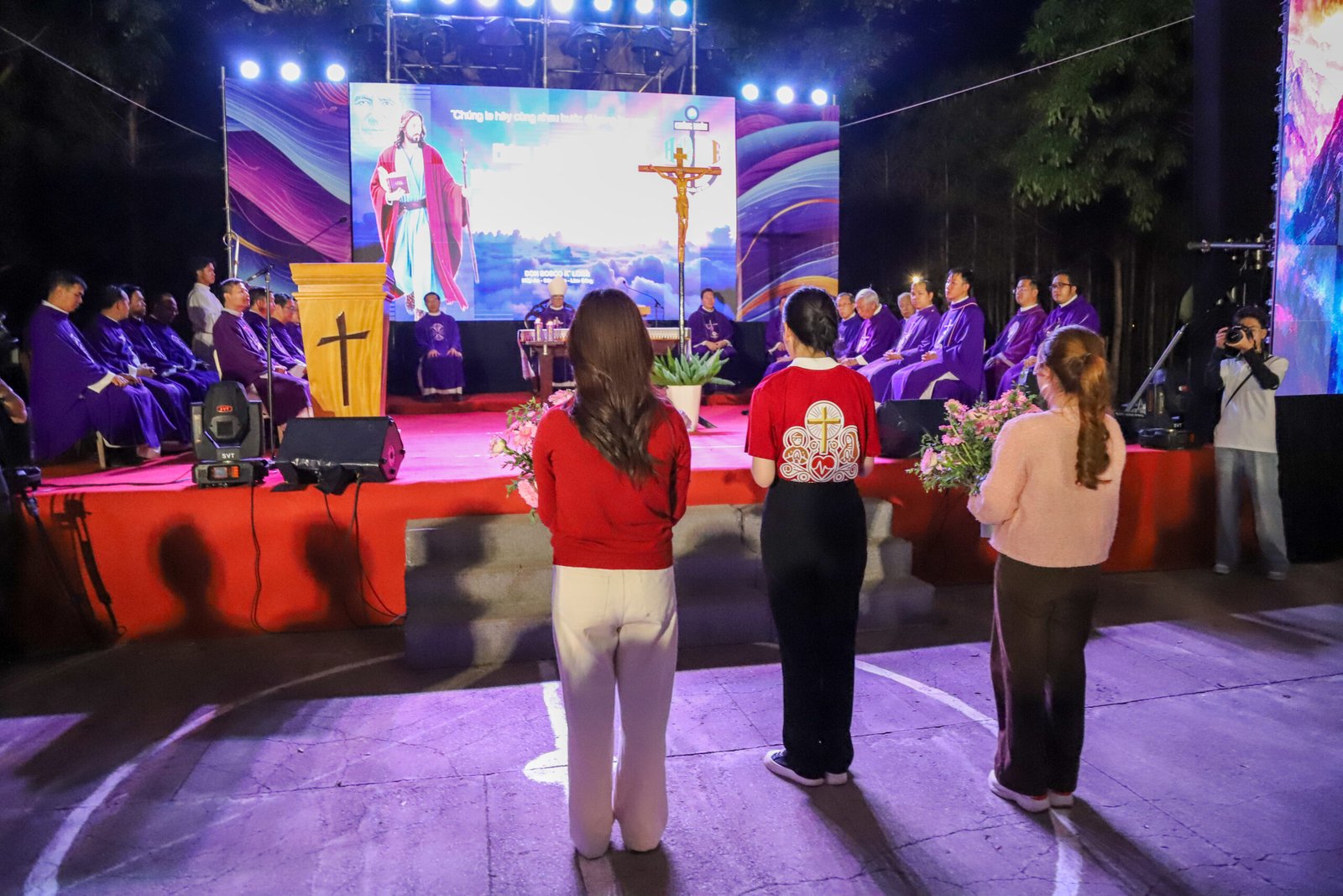 Lúc 17 giờ 45, Đức cha Đaminh chủ sự thánh lễ Chúa nhật II Mùa Chay. Trong bài giảng, Đức cha đã giúp các bạn trẻ hiểu rõ hơn về vinh quang của Chúa Giêsu và tầm quan trọng của việc sống theo con đường hy sinh và thập giá. Ngài cũng chia sẻ Sứ điệp Mùa Chay 2025 của Đức Thánh Cha Phanxicô, nhấn mạnh rằng “Hy vọng không làm chúng ta thất vọng”.