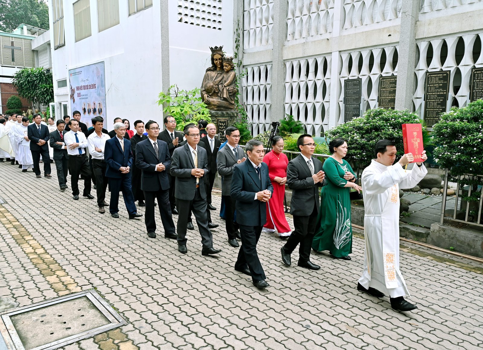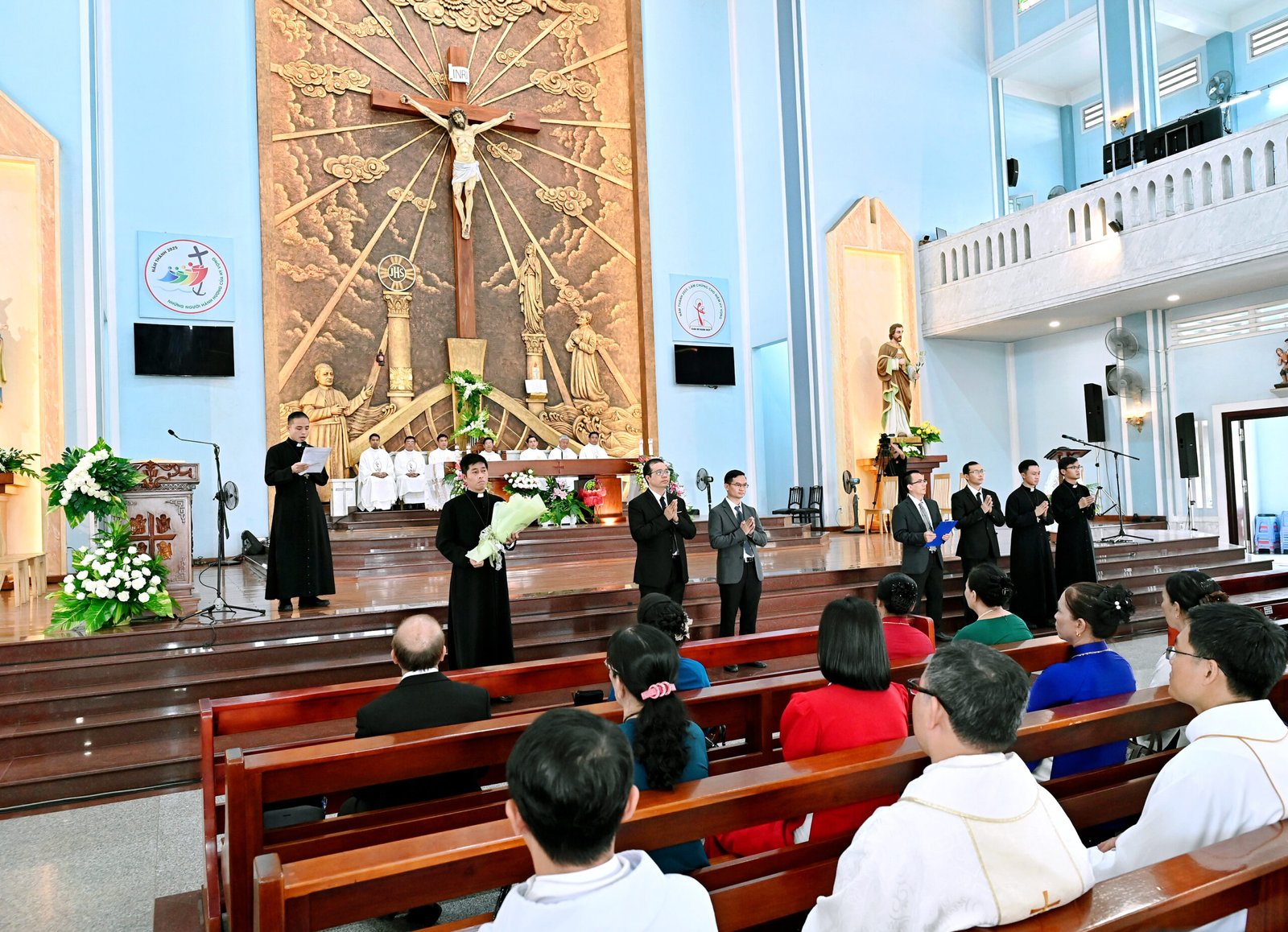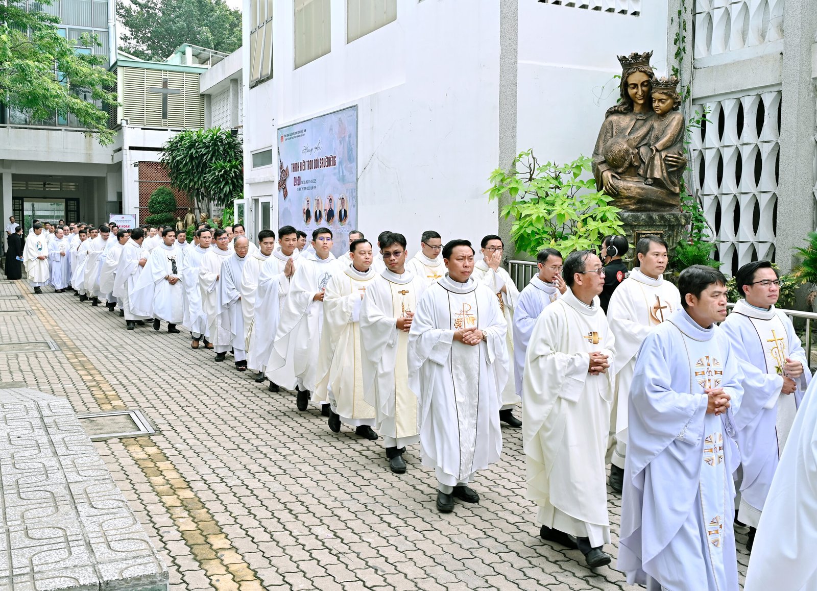 Đúng 9 giờ 00, đoàn đồng tế do Cha Giám tỉnh Barnaba Lê An Phong, SDB, chủ sự, đã long trọng tiến vào Thánh đường trong tiếng ca nhập lễ hân hoan của cộng đoàn, chính thức cử hành phụng vụ tạ ơn.