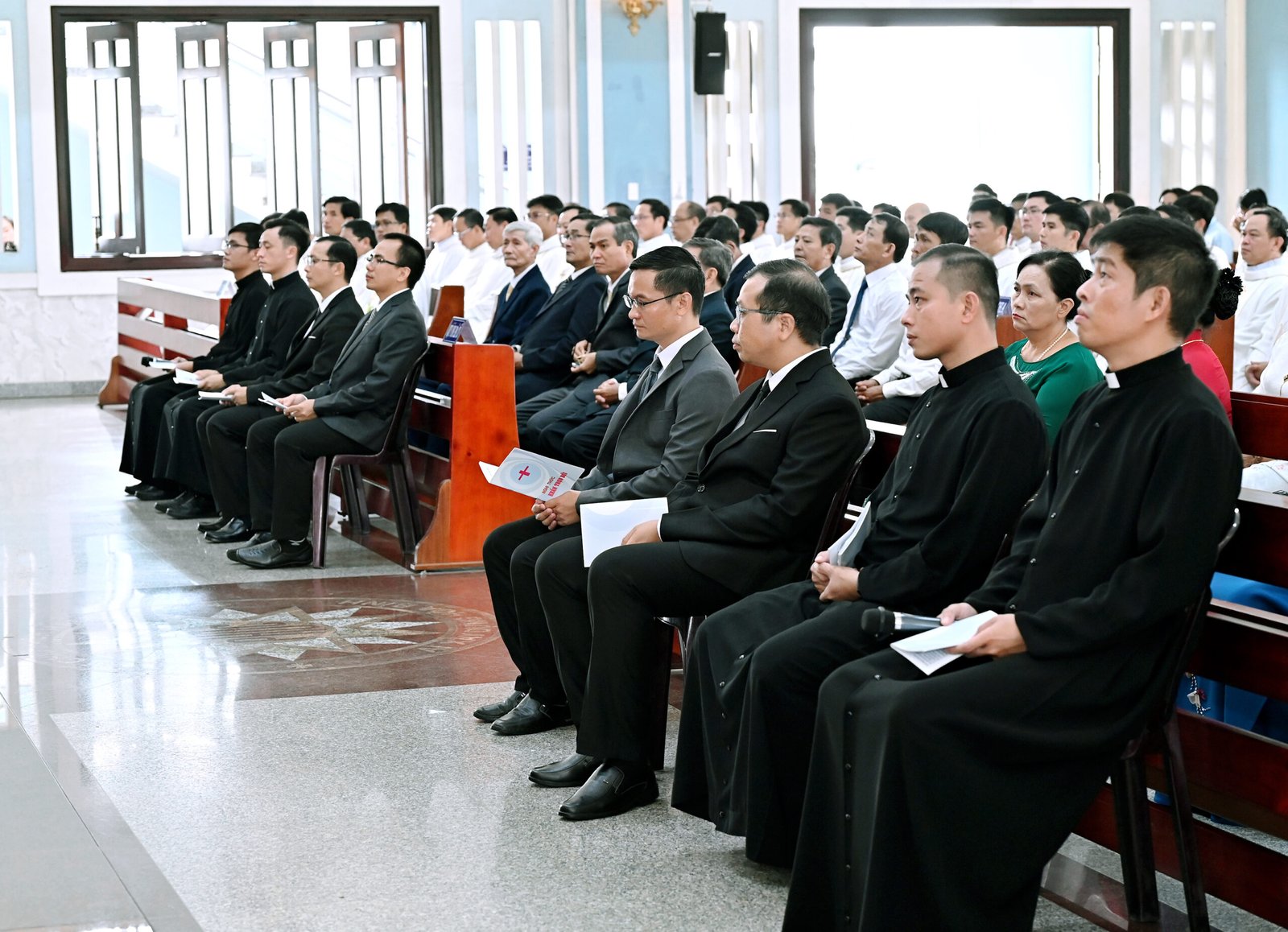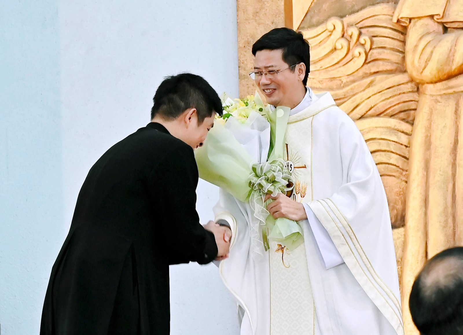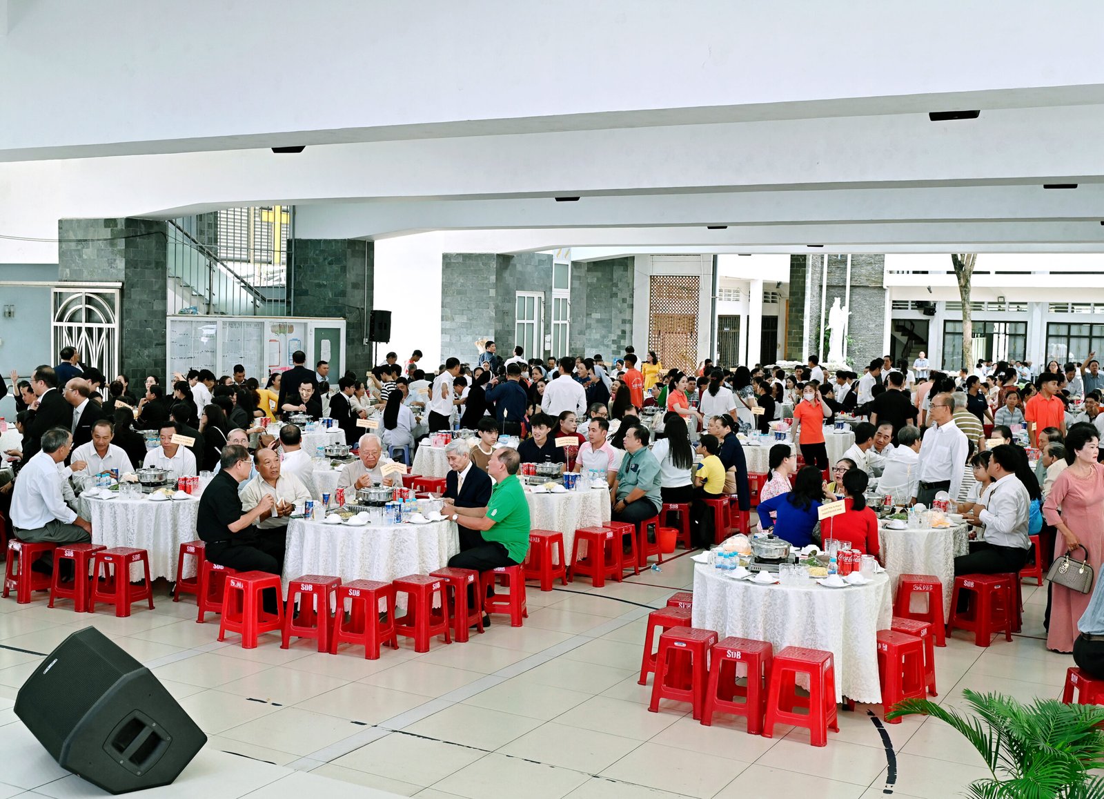Ngay từ sáng sớm, khuôn viên giáo xứ đã rộn ràng niềm vui hội ngộ. Quý Cha, quý Tu sĩ nam nữ, quý thân nhân, ân nhân và bạn hữu từ khắp nơi đã quy tụ về, cùng nhau chia sẻ niềm vui và hiệp thông cầu nguyện cho các tiến chức. Những lời chào thăm nồng hậu và những cái bắt tay ấm tình gia đình đã dệt nên một bức tranh hiệp nhất sống động.