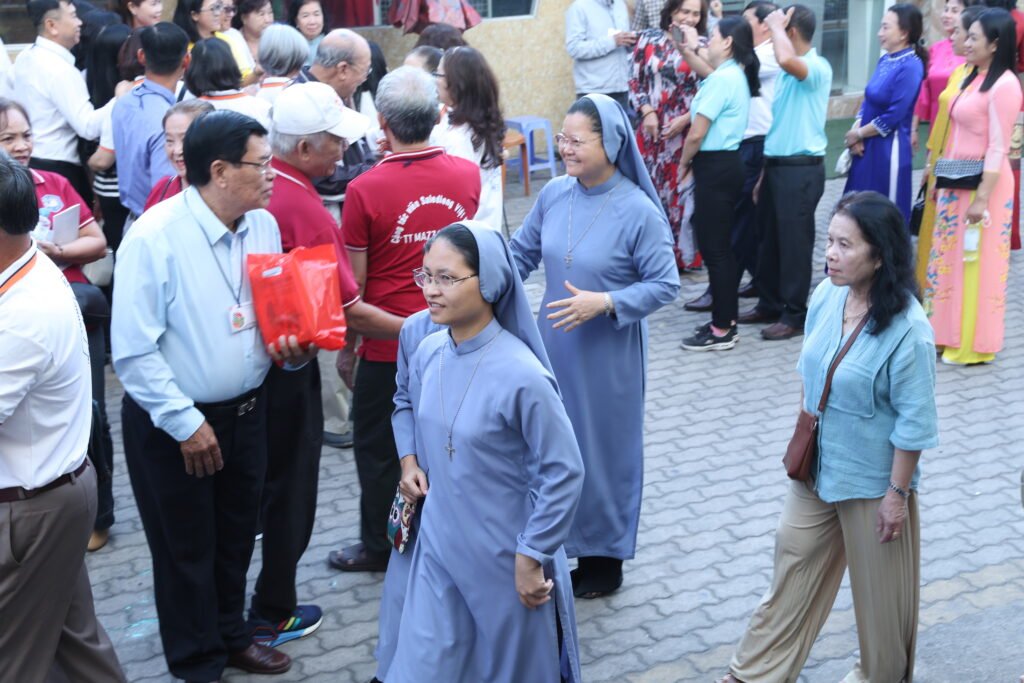 Sau những giây phút rộn ràng, cộng đoàn dành thời gian giải lao để gặp gỡ, trao đổi thân tình. Đây là khoảnh khắc quý giá để các thành viên thắt chặt tình gia đình qua những câu chuyện mục vụ đời thường.