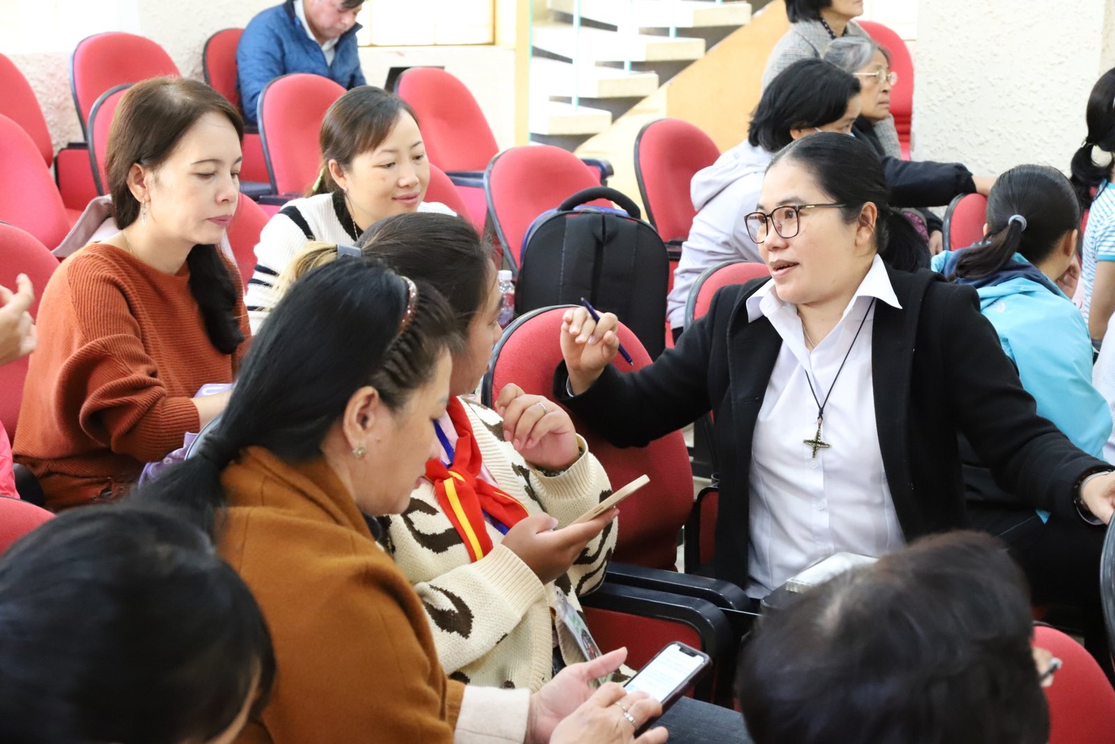 Sau ít phút giải lao, các tham dự viên thảo luận nhóm với 4 câu hỏi: Theo bạn đâu là chiều kích tạo nên linh đạo của người GLV? Đâu là những thuận lợi và thách đố trong đời sống ơn gọi GLV? Mẫu người GLV ngày nay theo bạn phải hội tụ những yếu tố nào? Đâu là những thao thức và những nhu cầu của GLV?