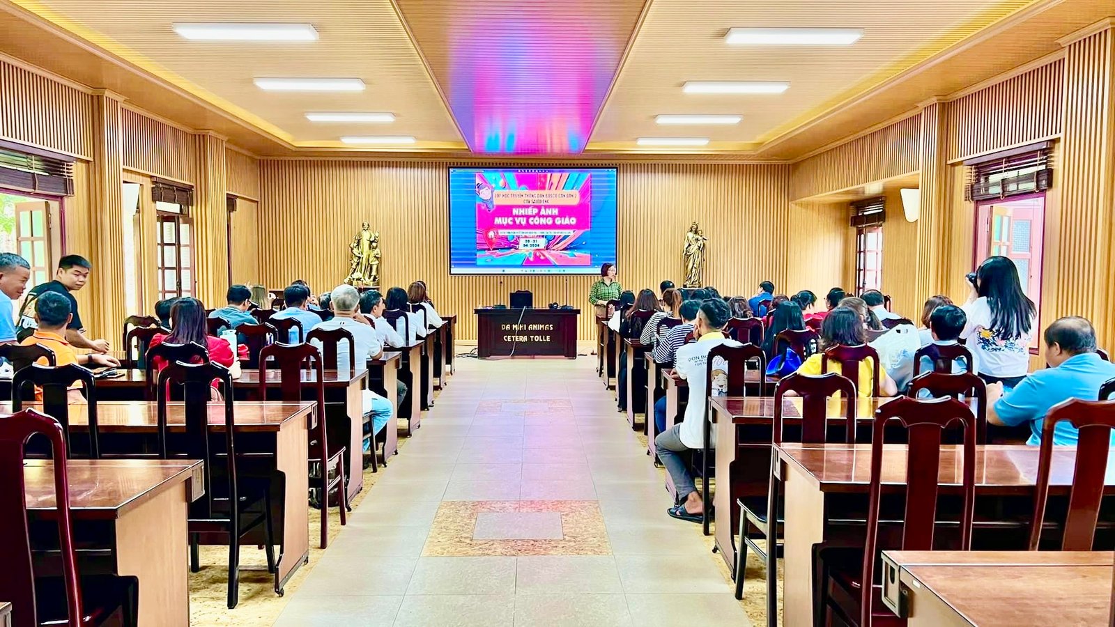 Đúng 09giờ15 chương trình được bắt đầu dưới sự hướng dẫn của Cha Giuse. Với lịch trình 2 ngày được ban tổ chức đề ra, cha cùng với các học viên cùng nhau chia sẻ những điểm chính yếu của môn nhiếp ảnh căn bản trong việc áp dụng vào mục vụ nơi các địa phương.