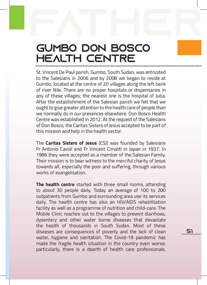 + Kế hoạch Ngày Truyền giáo Salêdiêng 2021 (Trợ giúp bệnh viện Gumbo của các sơ dòng Bác ái Chúa Giêsu ở Nam Sudan).
