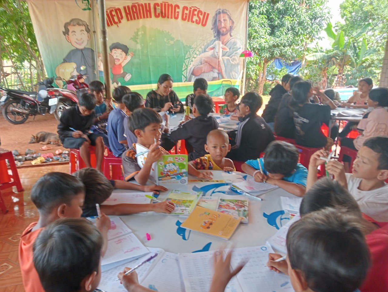 Sau hơn một tháng sinh hoạt hè tại các Làng Dok và Làng Ghè trực thuộc cộng thể Don Bosco PLei RonGol Khóp, Giáo phận Kontum, Cha Giuse Đỗ Văn Dũng và Tu Sinh Phùng Quang Tuyên, cùng các bạn đội trưởng đã tổ chức cho các em ngày: Hội Chợ ẩm thực kết hè với chủ đề: ƯỚC MƠ TƯƠNG LAI.