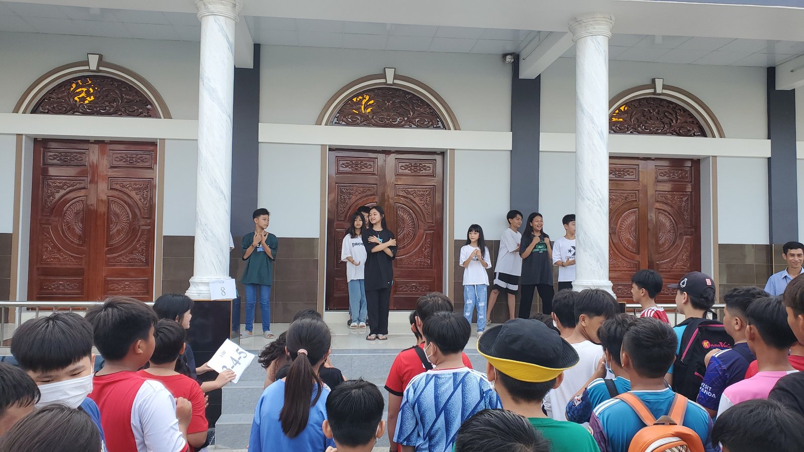 Ngày khai giảng diễn ra thật tốt đẹp. Sau khi thầy phó tế Antôn Ngô Mạnh Lâm đã ổn định hàng ngũ và giới thiệu thành phần tham dự, cha xứ Gioan Baotixita Phan Huy Chương lên phát biểu cảm tưởng và cho huấn dụ. Ngài gửi gắm các em cho quý thầy cô. Về phần các em, ngài nhắn nhủ phải chuyên cần học tập rèn luyện trí dục cũng như đức dục. Ngài nhấn mạnh đến kỹ năng sống và hòa nhập với tập thể, với đồng bạn. Và ngài chính thức tuyên bố khai mạc hè năm 2022 vào lúc 9h00.