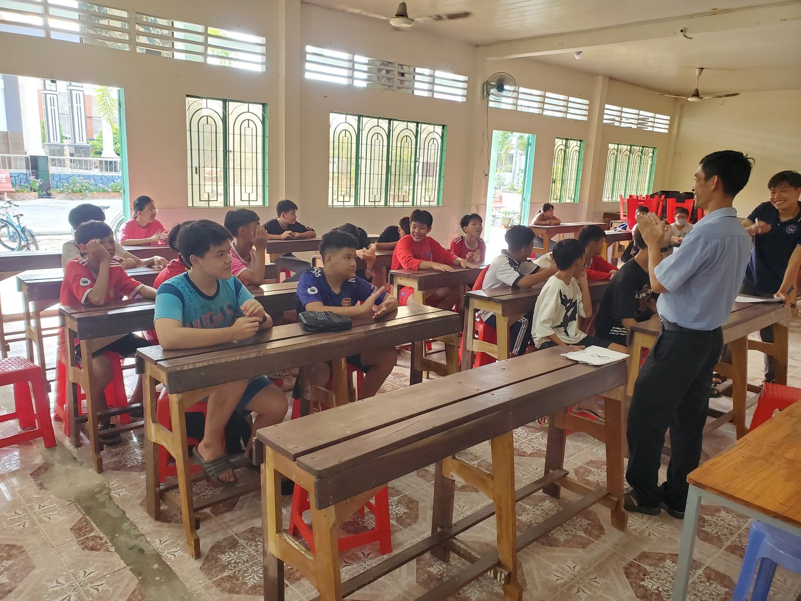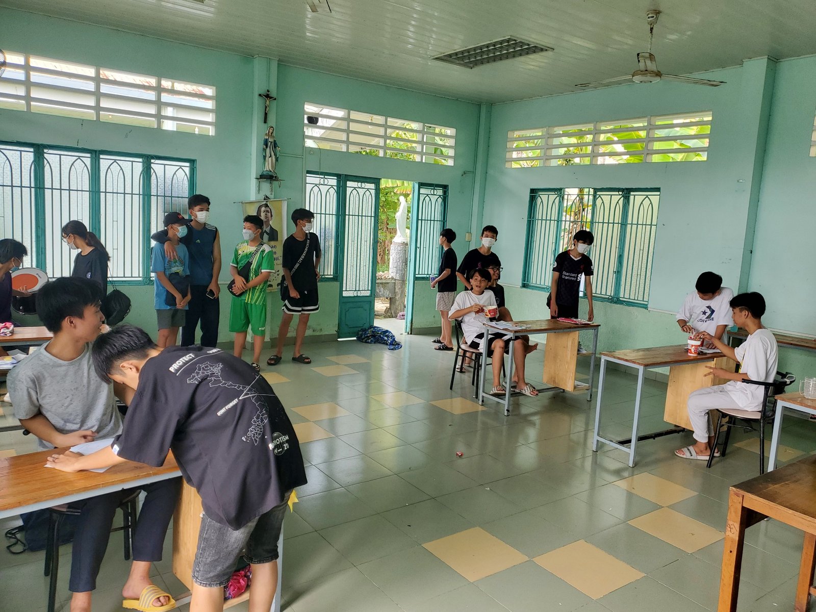 Mùa hè năm nay thật sôi động và ý nghĩa, Giáo xứ Tắc vân thật rộn ràng, tấp nập tiếng cười vui đùa của trẻ. Đây là mùa hè sau 2 năm gián đoạn vì Covid – 19, hè năm nay, Giáo xứ Tắc Vân lại tiếp tục tổ chức học hỏi, vui chơi sinh hoạt hè. Sáng ngày 11 tháng 06, quý cha, thầy Don Bosco đã quy tụ hơn 150 trẻ em nghèo ở xã Tắc Vân đến khuôn viên giáo xứ để khai giảng khóa học hè từ lớp 1 đến lớp 9 và sinh hoạt vui chơi lành mạnh. Buổi Sáng học văn hóa gồm ba môn: Toán, Văn, Anh Văn ; buổi Chiều học năng khiếu và thi đua sinh hoạt thể thao.