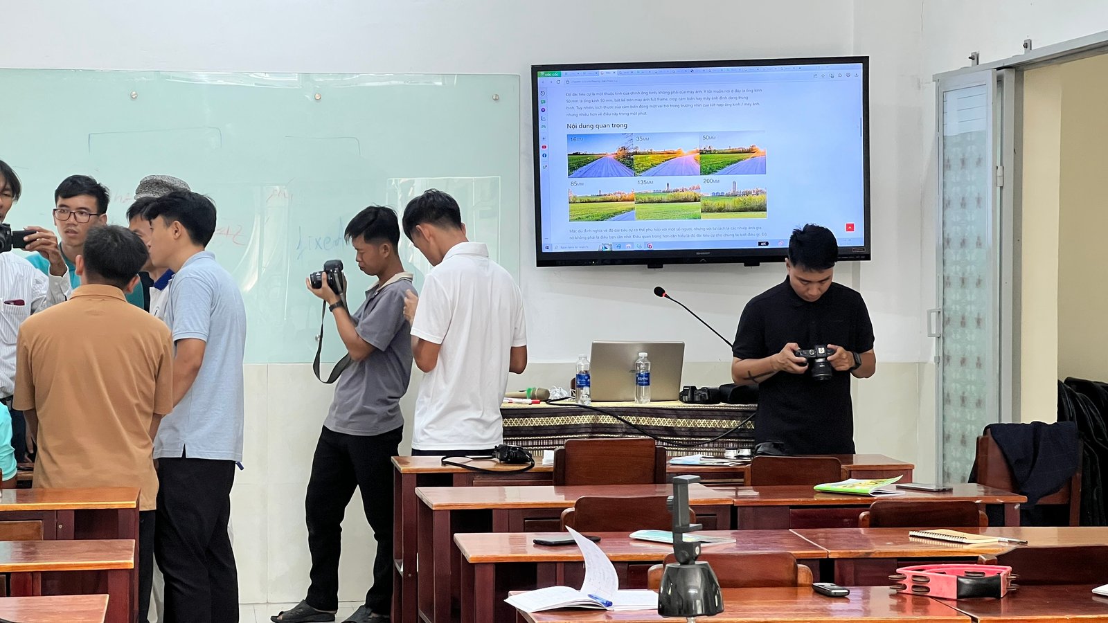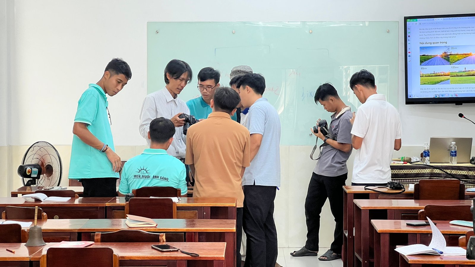 Buổi học cuối cùng, anh em được làm quen, trải nghiệm và thực hành trực tiếp trên những thiết bị truyền thông. Trong buổi học, anh em được lắng nghe chia sẻ của một cựu nhiếp ảnh gia chuyên nghiệp tại Sài Gòn.