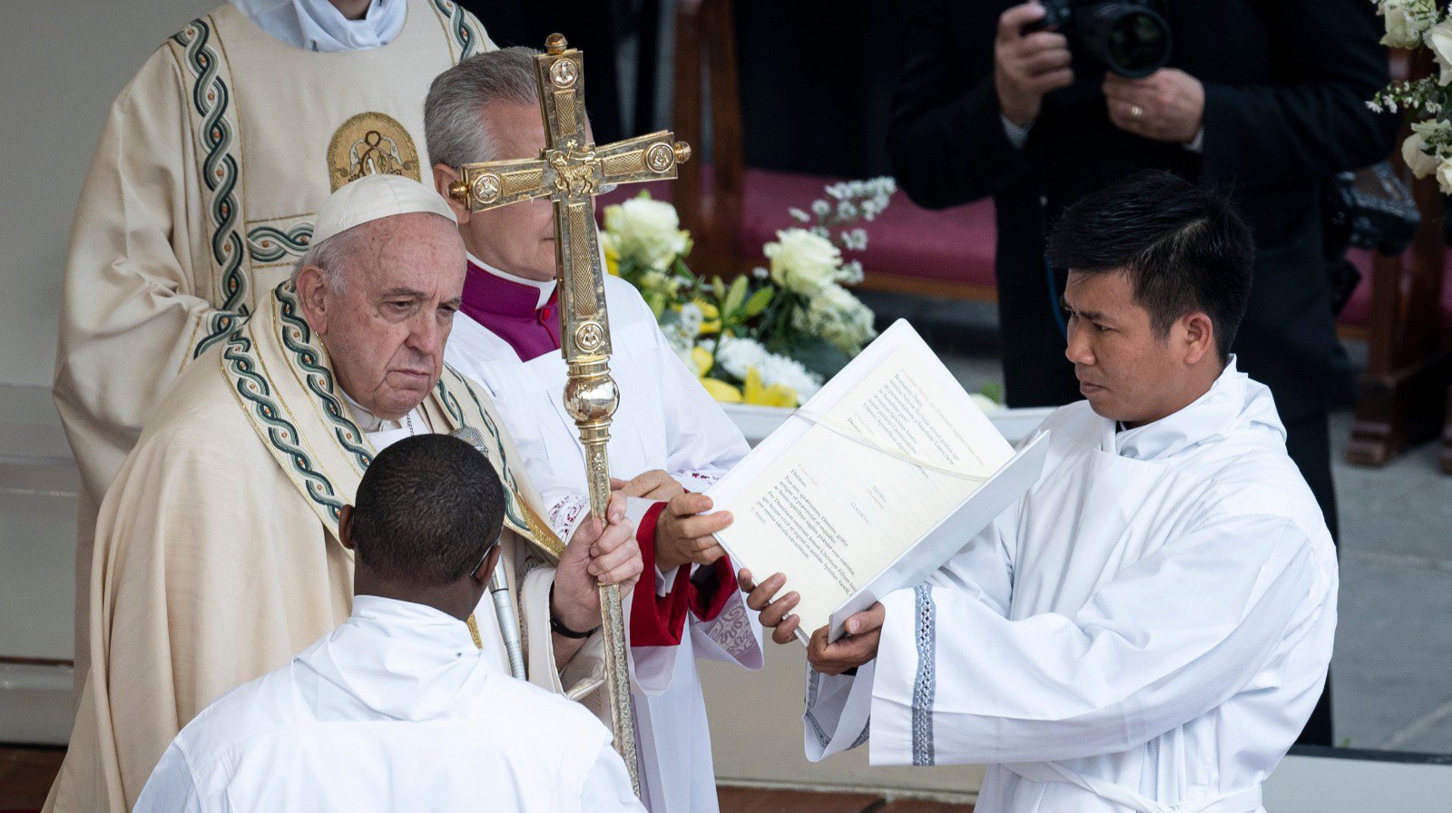 Sau khi Đức Thánh Cha và cộng đoàn hát kinh Thương Xót và kinh Cầu Các Thánh, ĐTC đã đọc công thức phong thánh: