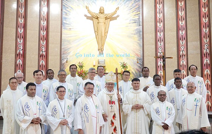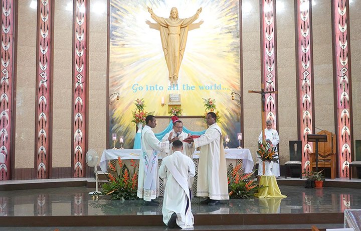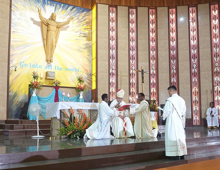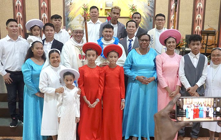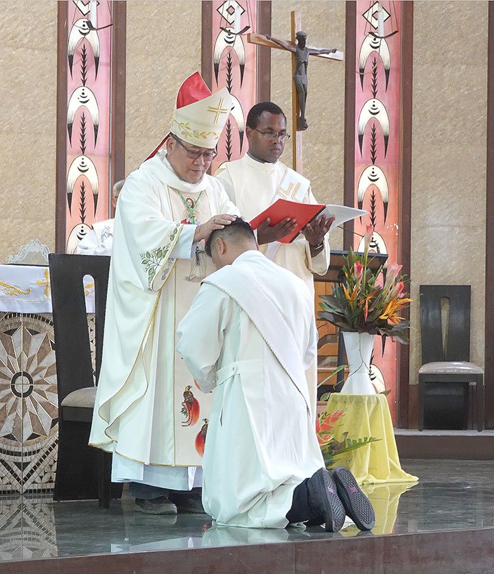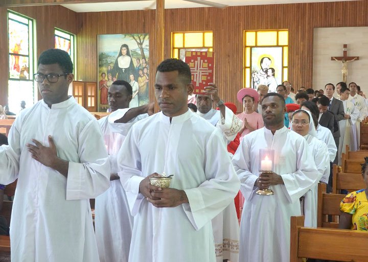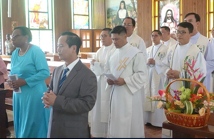 Đức Cha Pedro Baquero Jr, SDB, Giám mục Kerema chủ sự Thánh lễ và phong chức cho Tân linh mục. Đồng tế với ngài có Cha Gregory Bicomong sdb, Bề trên Giám tỉnh của Á Tỉnh Papua New Guinea, các linh mục dòng Salêdiêng và giáo phận, các tu sĩ, giáo dân và sinh viên. Một số người Việt Nam cũng tham dự thánh lễ.