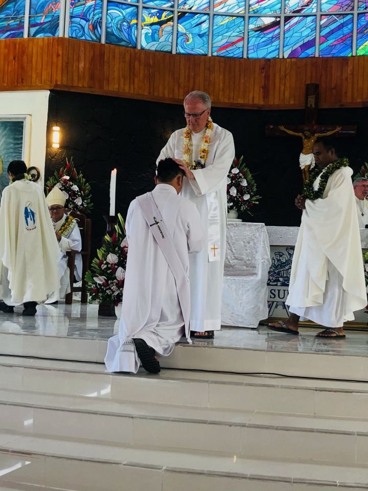 Apia, Samoa, ngày 14 tháng 12 năm 2024 – Một cột mốc lịch sử và đầy niềm vui đã được cử hành tại đất nước truyền giáo Samoa khi Cha Nguyễn Anh Vũ SDB, được truyền chức linh mục, trở thành Salêdiêng Việt Nam đầu tiên được thụ phong tại Samoa. Thánh Lễ Truyền Chức, một sự kiện trọng đại của cộng thể Salêdiêng, được tổ chức tại Giáo xứ Thánh Gioan Bosco, Sinamoga, và do Tổng Giám Mục Mosese Vitolio Tui, SDB, chủ sự. Buổi lễ còn có sự hiện diện của Ban Cố Vấn Tỉnh Dòng Úc – Thái Bình Dương, các Salêdiêng đang phục vụ tại Samoa, và đông đảo cộng đoàn giáo xứ.