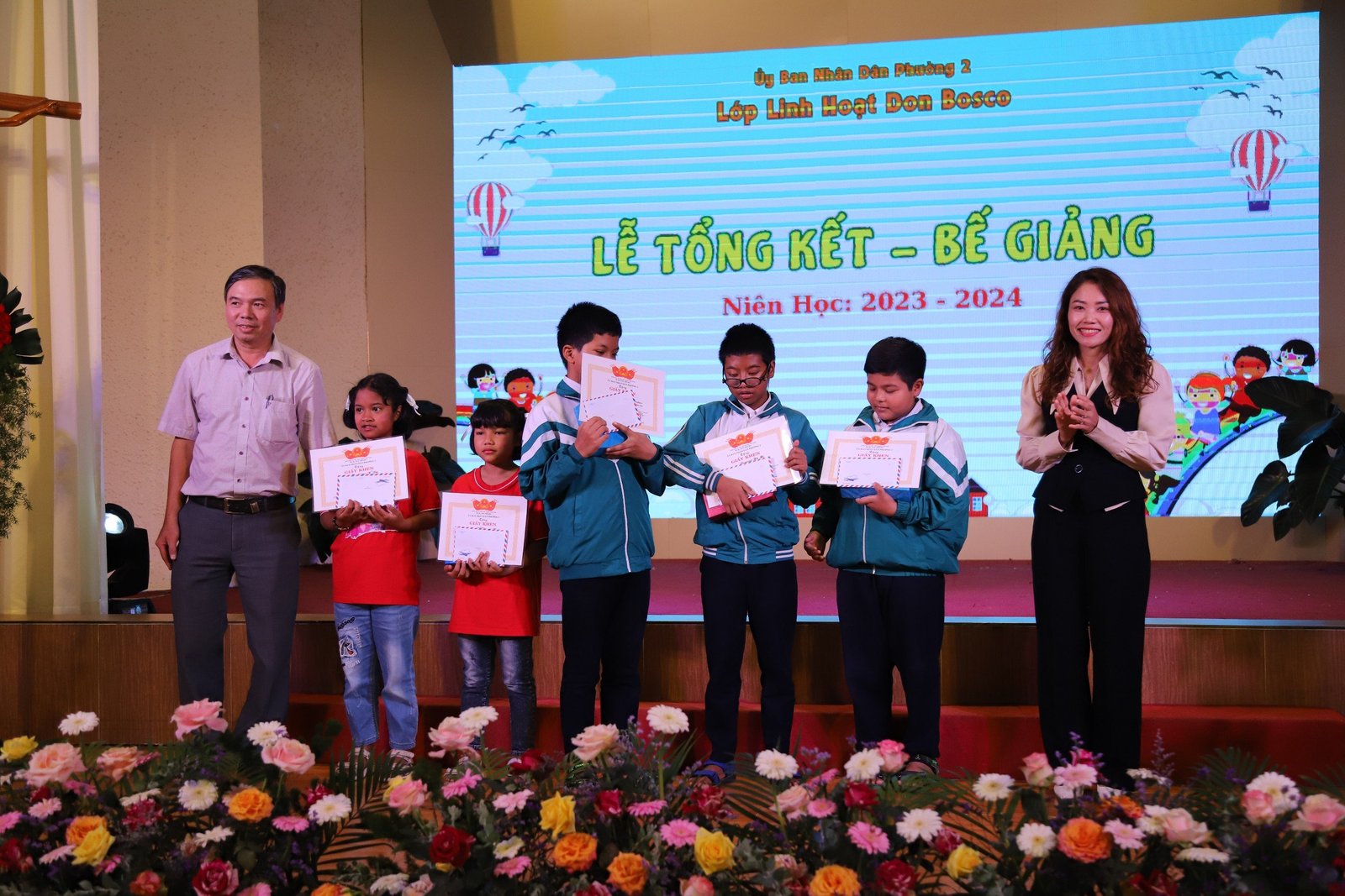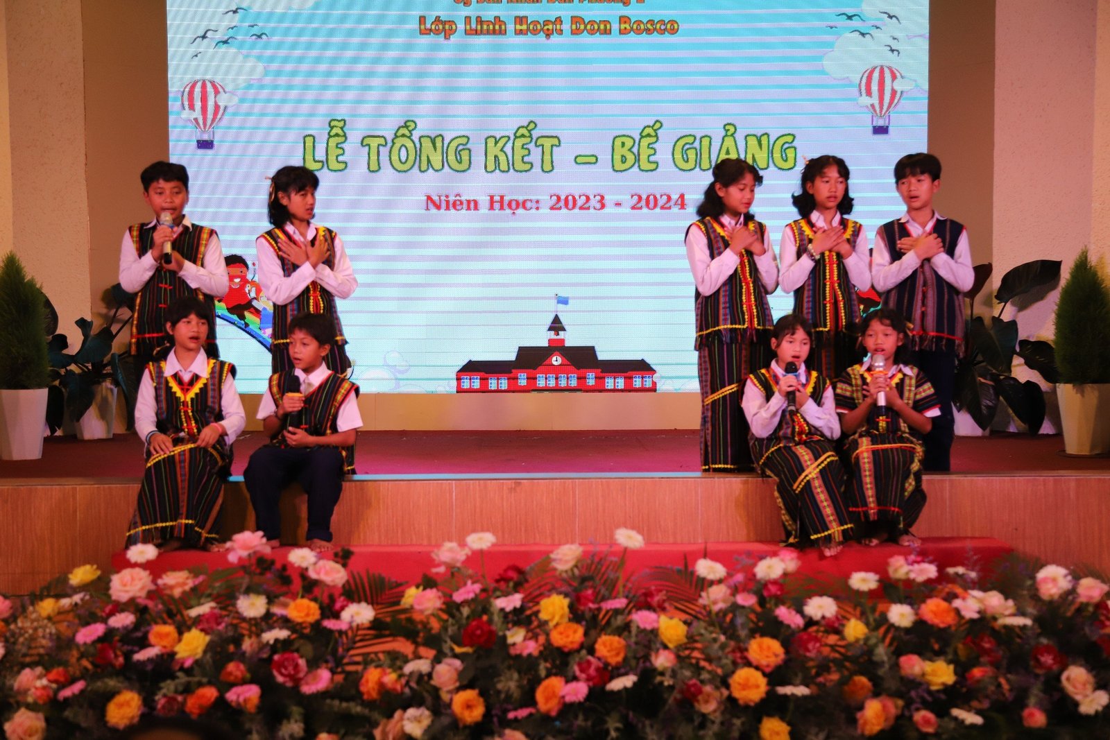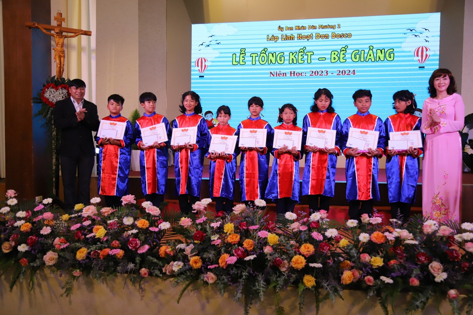 Trong buổi lễ, thầy Sư huynh Đaminh Nguyễn Võ Hà Anh, SDB đặc trách Lớp linh hoạt Don Bosco Đà Lạt đã ghi nhận sự nỗ lực của thầy cô giáo và các học sinh của Lớp linh hoạt, trong đó có 3 em đạt thành tích Xuất sắc, 28 em đạt kết quả Giỏi, 43 em đạt kết quả Khá và 14 em đạt Trung Bình, 7 em học lực Yếu, cùng với 3 em học Hòa nhập. Đồng thời, lớp Linh hoạt cũng có 20 em học sinh lớp 5 niên khóa 2019 – 2024 ra trường với thành tích: 3 học sinh Xuất sắc, 6 học sinh Giỏi, 11 học sinh Khá trong kỳ thi cuối năm, và để khích lệ các em bước sang một giai đoạn mới, nhà Dòng cùng với một số vị Ân nhân đã trao tặng mỗi em một chiếc cặp như là một phần thưởng dành cho sự nỗ lực của các em trong thời gian học vừa qua.