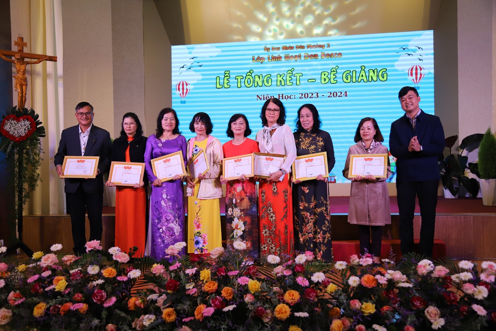 Dịp này, Lớp linh hoạt Don Bosco cũng vinh danh các thầy cô giáo có nhiều đóng góp trong công tác giúp cho các em học sinh có hoàn cảnh khó khăn trong cuộc sống, tuyên dương các học sinh có thành tích xuất sắc trong năm 2023-2024.