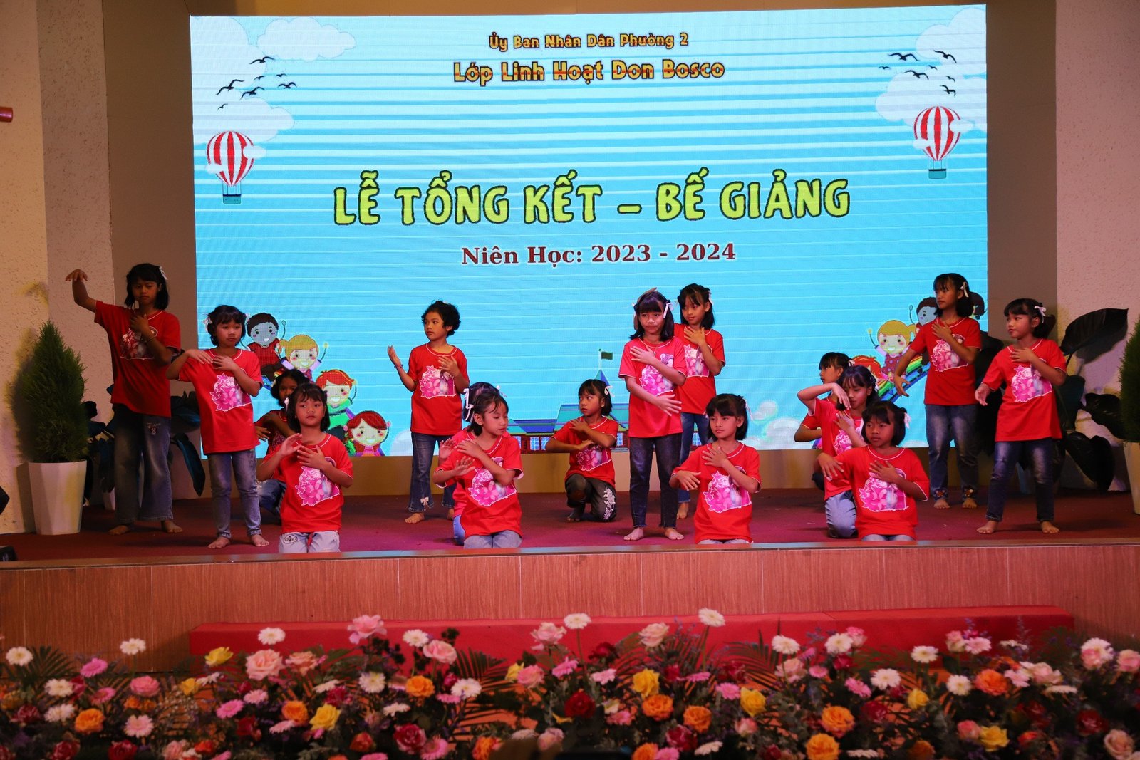 Buổi lễ bắt đầu với tiết mục văn nghệ “Chào Mùa Hè” đến từ các em học sinh lớp 2 của Lớp linh hoạt Don Bosco.